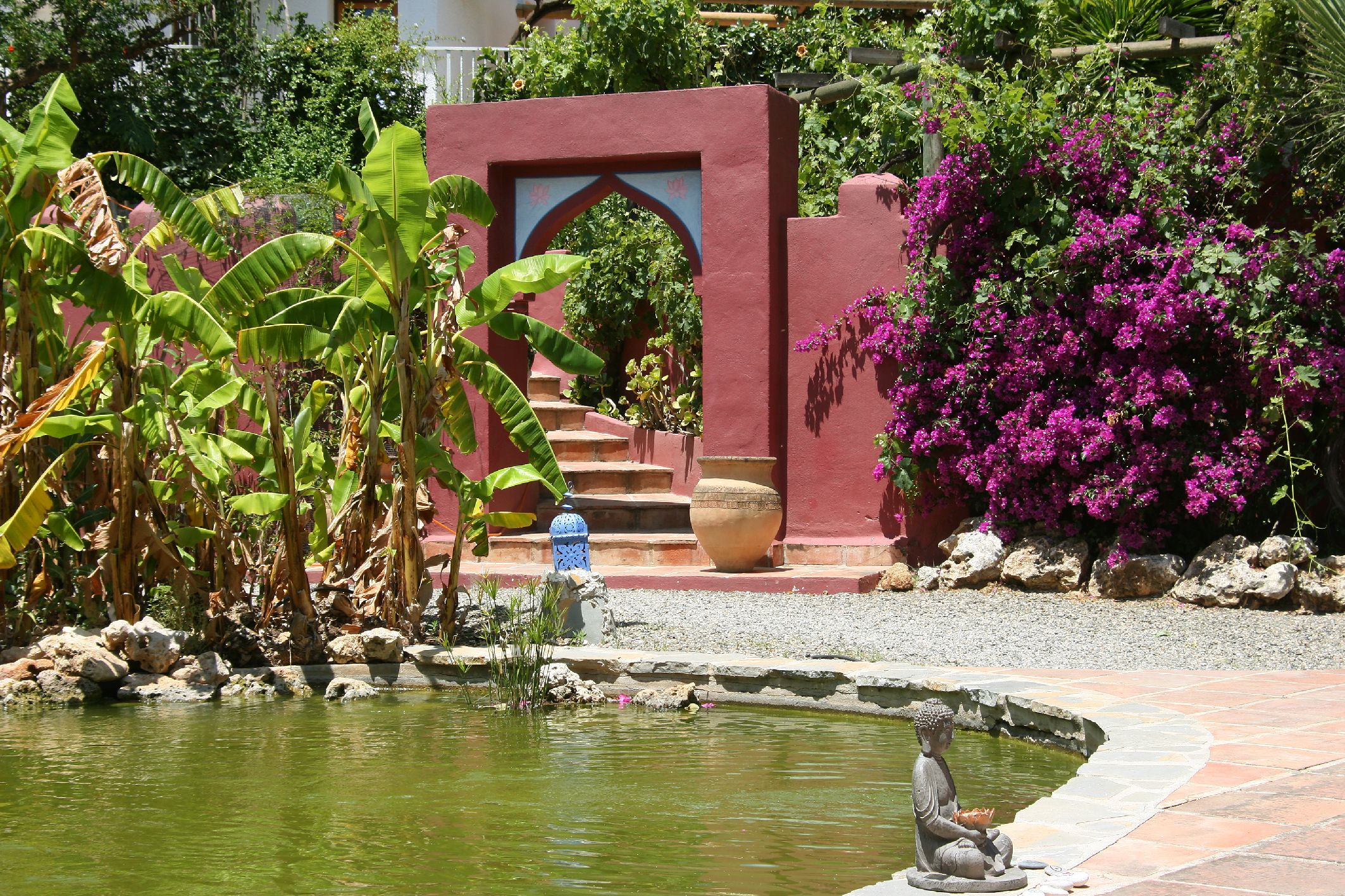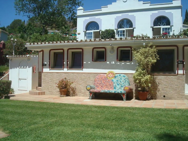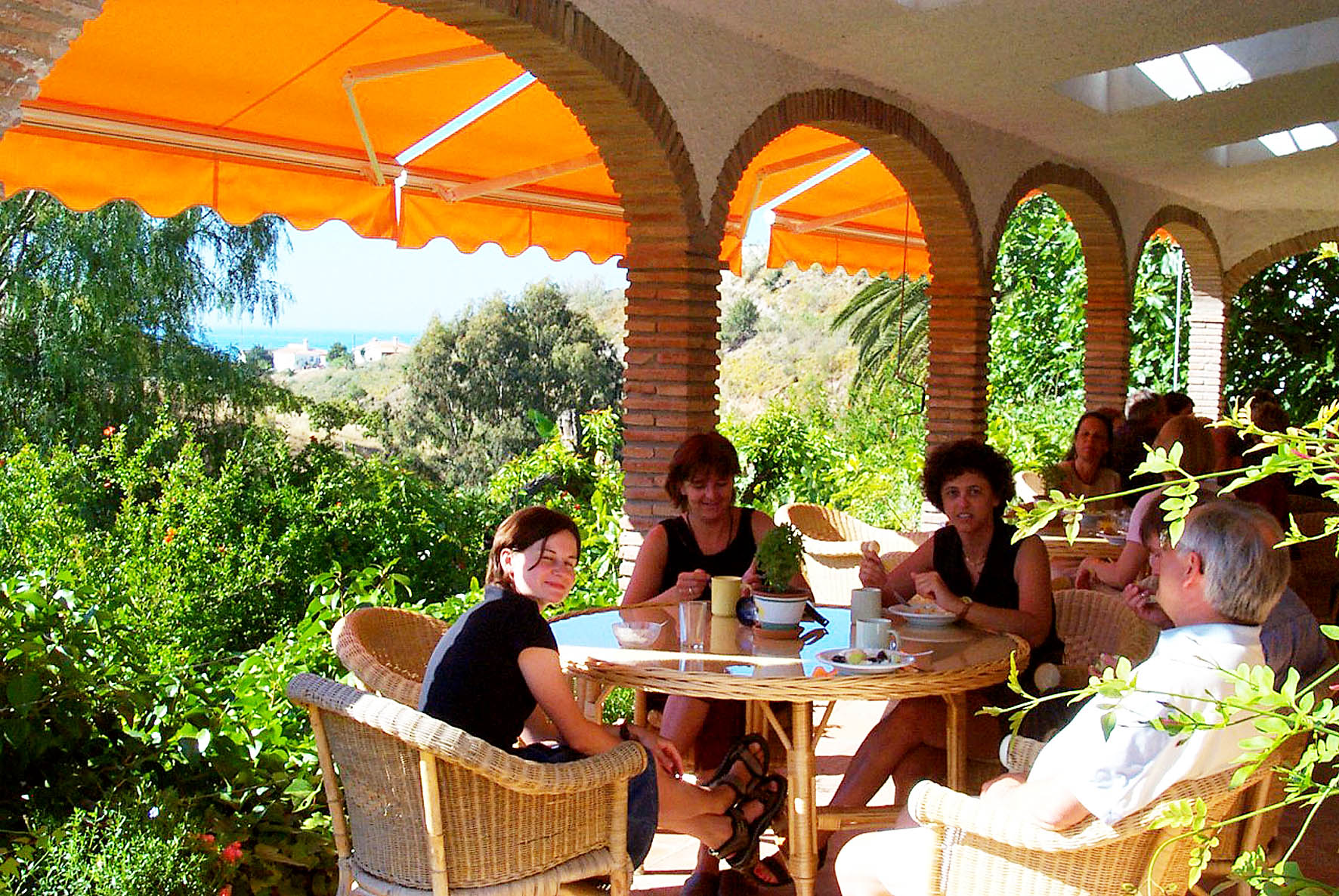Die paradiesisch anmutende Anlage erstreckt sich auf einem ca. 7 Hektar großen Gelände über mehrere Ebenen und verfügt über 40 gemütliche und freundlich ausgestattete Zimmer mit Dusche/WC (ca. 12-22 qm), drei lichtdurchflutete Seminarhallen, einen Salzwasser- Swimming-Pool, Sauna, Trampolin, Liegewiesen, Restaurant mit Panorama-Terrasse mit Blick zum Meer und die grünen Hügel. Alle Zimmer sind grundsätzlich unterschiedlich in Größe, Lage innerhalb der Anlage und mit oder ohne Balkon/Terrasse/Gartenzugang ausgestattet. Die Einzelzimmer der Kategorie 2 sind hier bevorteilt (z.B. Doppelzimmer zur Alleinnutzung, großzügigerer Grundriss, mit Gartenzugang o.ä.). Im Winter sind alle Unterkünfte und die Seminarräume beheizbar. Den langen Sandstrand des kleinen Ferienortes Benajarafe erreichen Sie in ca. 25 Minuten zu Fuß (ca. 1,5 km). Dort gibt es Restaurants, Bank, Post und auch die Busstation. Lohnende Tagesausflüge in die Umgebung organisiert das Team vor Ort.
