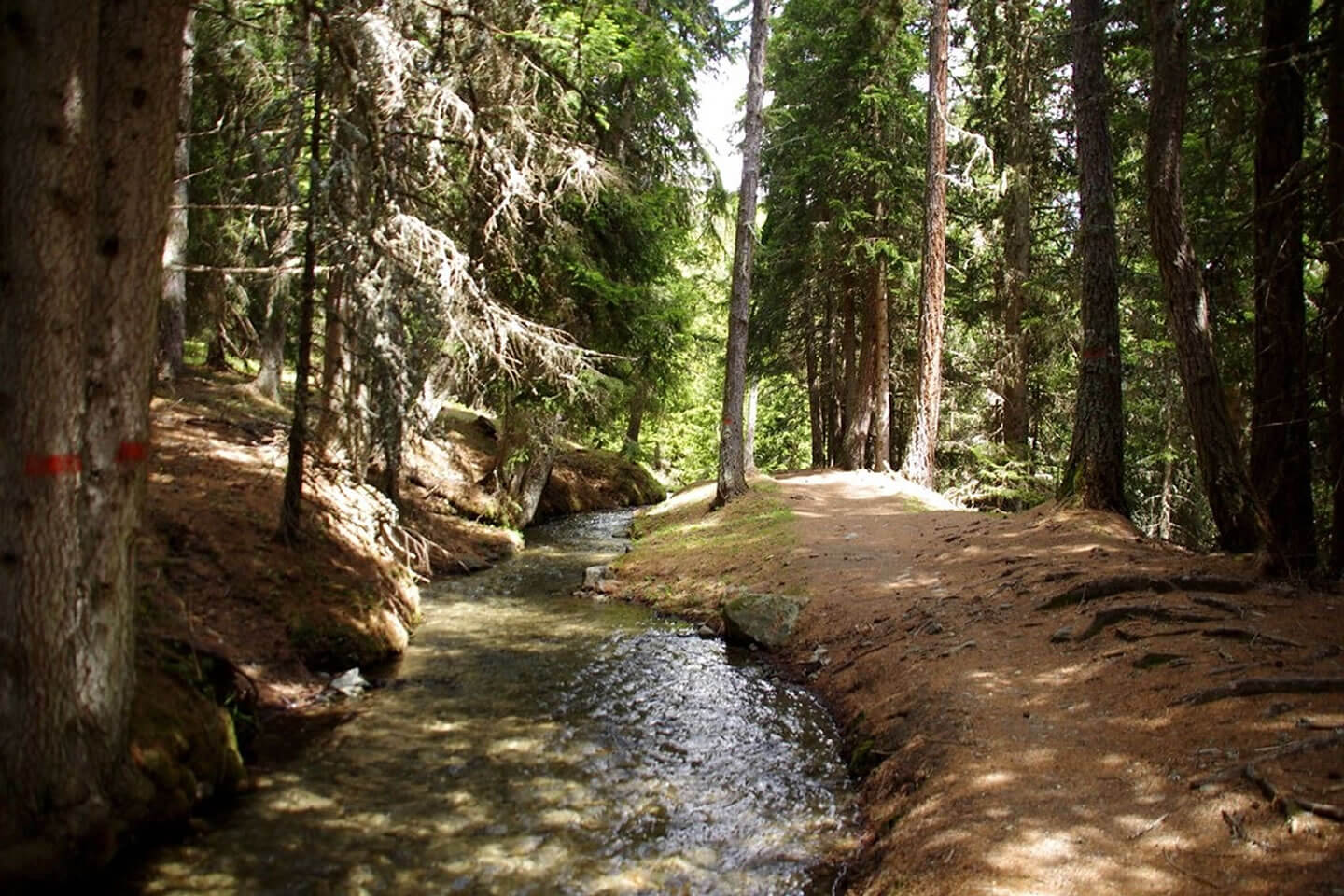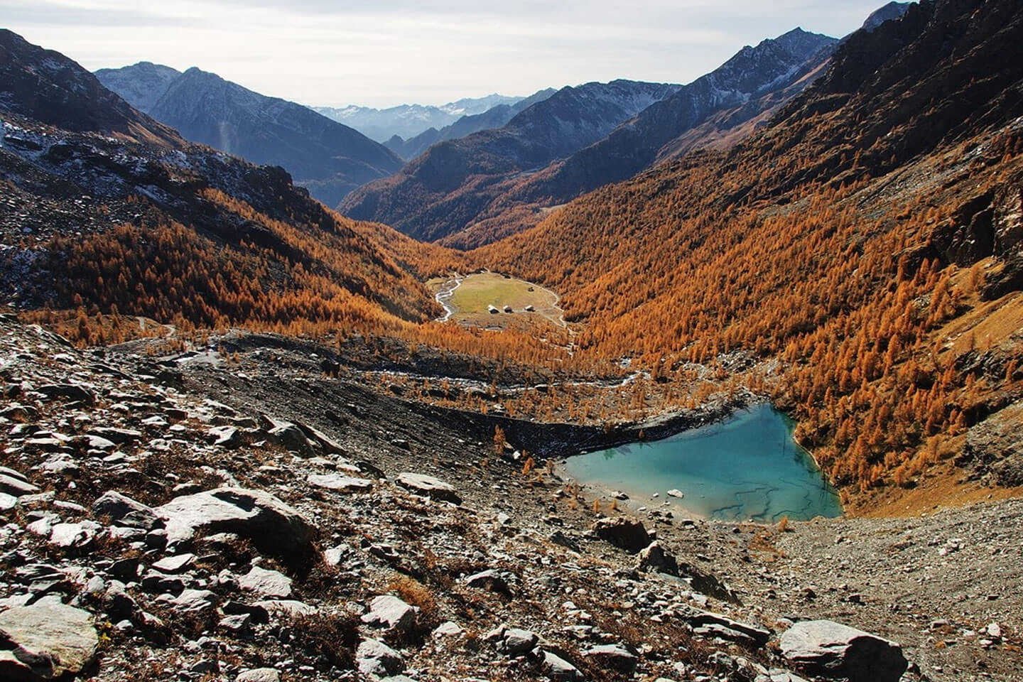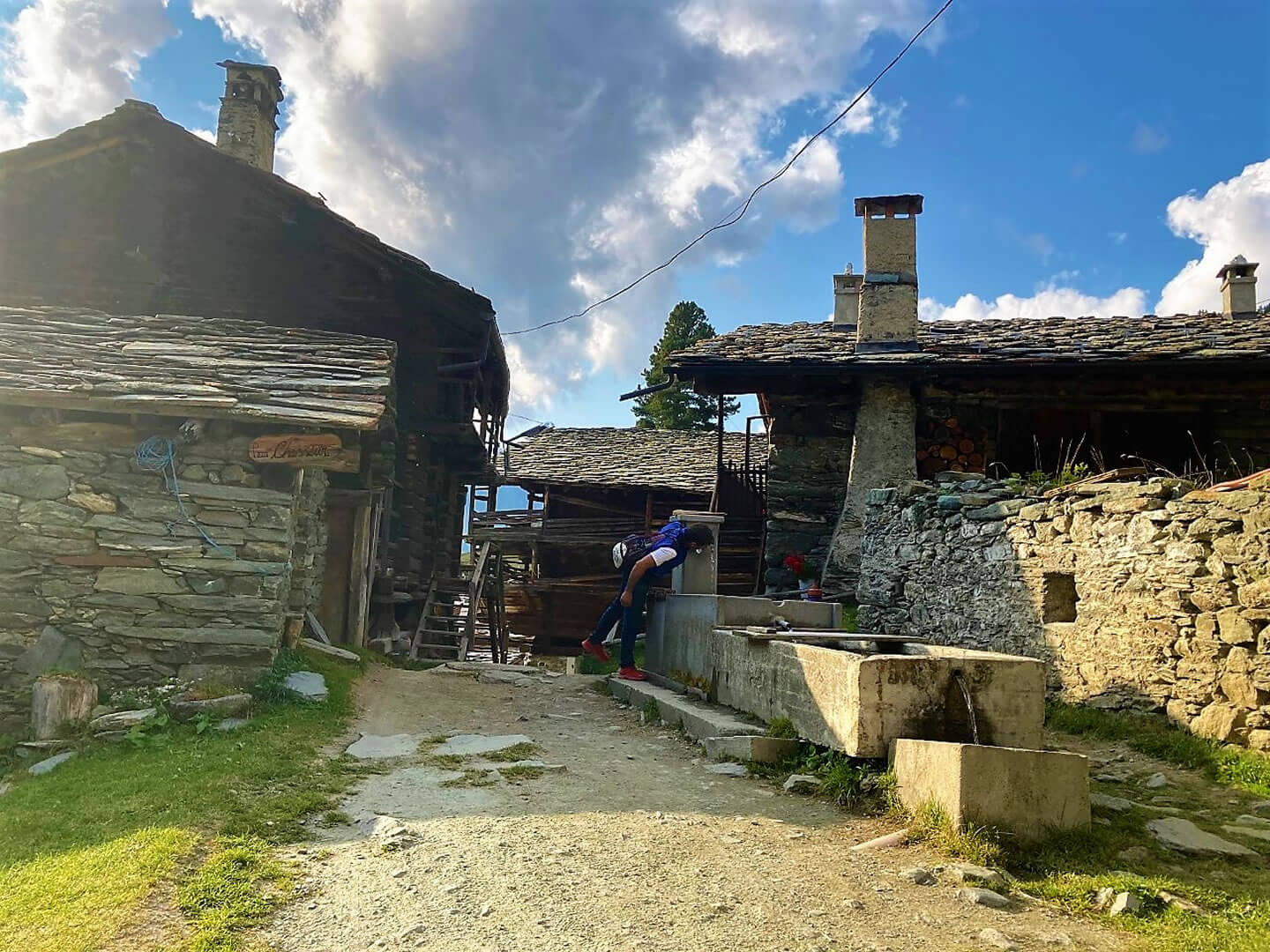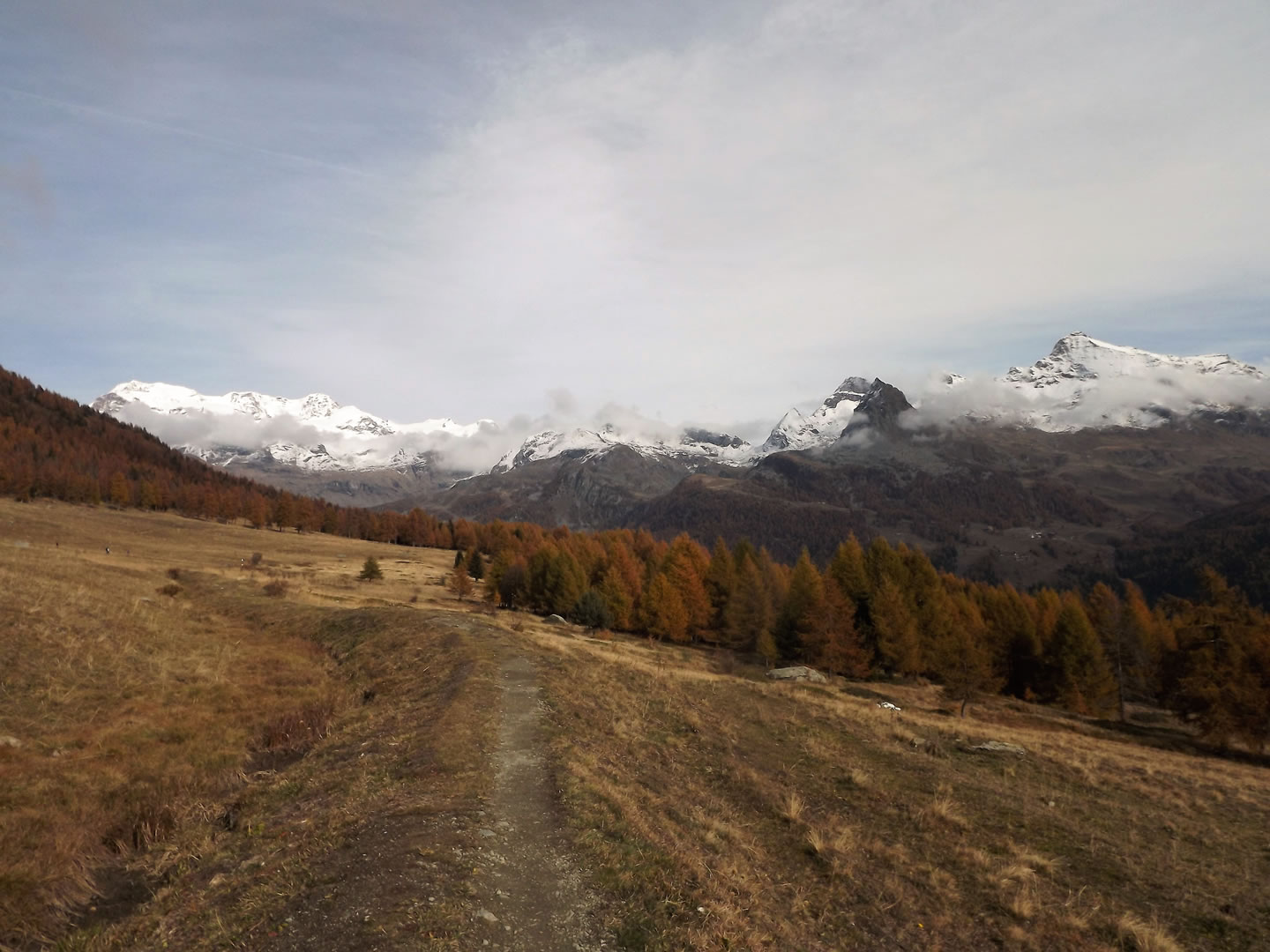 Die erste Etappe beginnt mit einem Aufstieg durch den Bergwald oberhalb von Brusson. Aus dem Holz der Bäume werden noch heute die einstmals für die Region typischen Holzschuhe in Handarbeit hergestellt. Am Col de Joux (1.693 m) bietet sich bei klarem Wetter einen herrlichen Blick auf die Berggipfel bis zum Mont Blanc. Der Weg verläuft weiter entlang eines Bewässerungskanals und durch 14 in den Fels geschlagene Tunnel, die bereits im Mittelalter angelegt wurden. Wenn Sie die Hochebene von Barmasc (1.900 m) erreichen, auf dem früher die Hirten im Sommer lebten, haben Sie Ihr erstes Etappenziel erreicht. Sie übernachten in einer komfortablen Pension mit kleinem Wellnessbereich. Das schmackhafte Abendessen wird im Restaurant nebenan serviert.