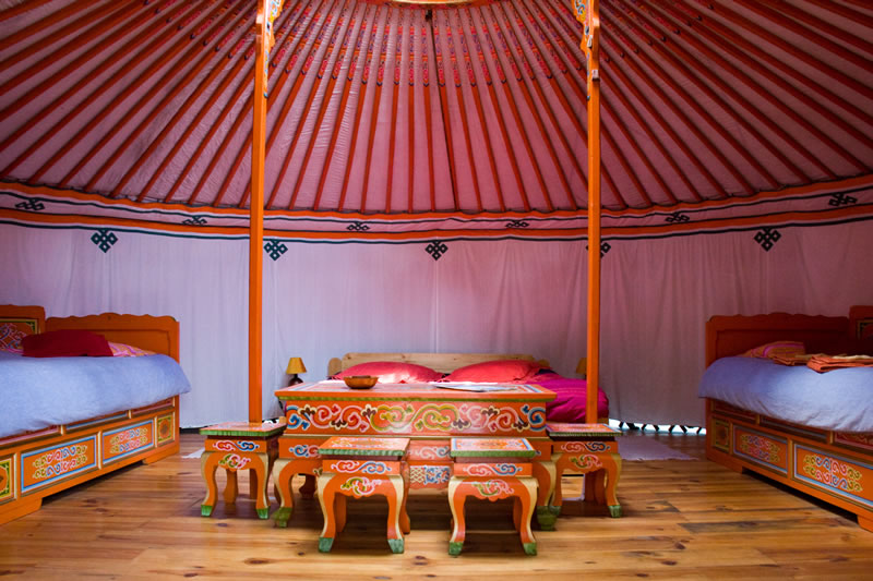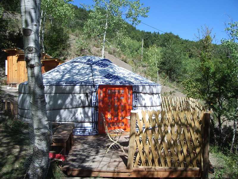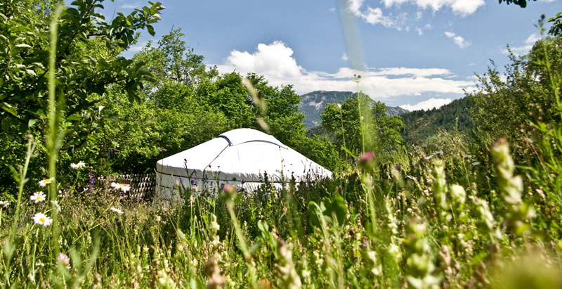 Übernachtung in einer Jurte in Villeplane. Die beiden Jurten, die direkt aus der Mongolei importiert wurden, liegen versteckt inmitten grüner Wildnis. Ein unvergessliches Erlebnis und eine Möglichkeit mit dem ursprünglichen Leben in und mit der Natur in Kontakt zu kommen. -