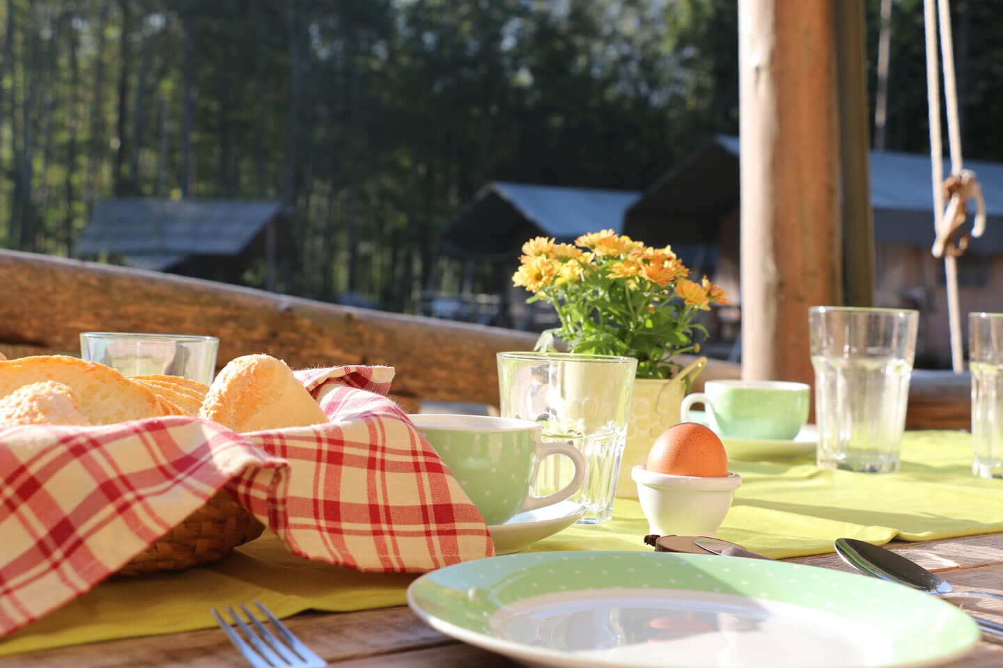 Beginnen Sie Ihren Morgen mit einem reichhaltigen Frühstücksbuffet mit duftendem Kräutertee, frisch gebackenem Brot, selbst gemachten Konfitüren und Aufstrichen, leckerem Käse und Eiern von den hauseigenen Hühnern. Probieren sollten Sie auch unbedingt einmal slowenische Spezialitäten wie Zganci oder Maslovnik. Abends verzaubert ein 4-Gang-Menü mit traditionellen Gerichten aus der slowenischen Küche und immer mit besten Zutaten, teils aus dem eigenen Garten. Dazu werden u.a. hofeigene Getränke wie Apfel- oder Holundersaft, sowie slowenische Weine serviert.Glamping im Sommer