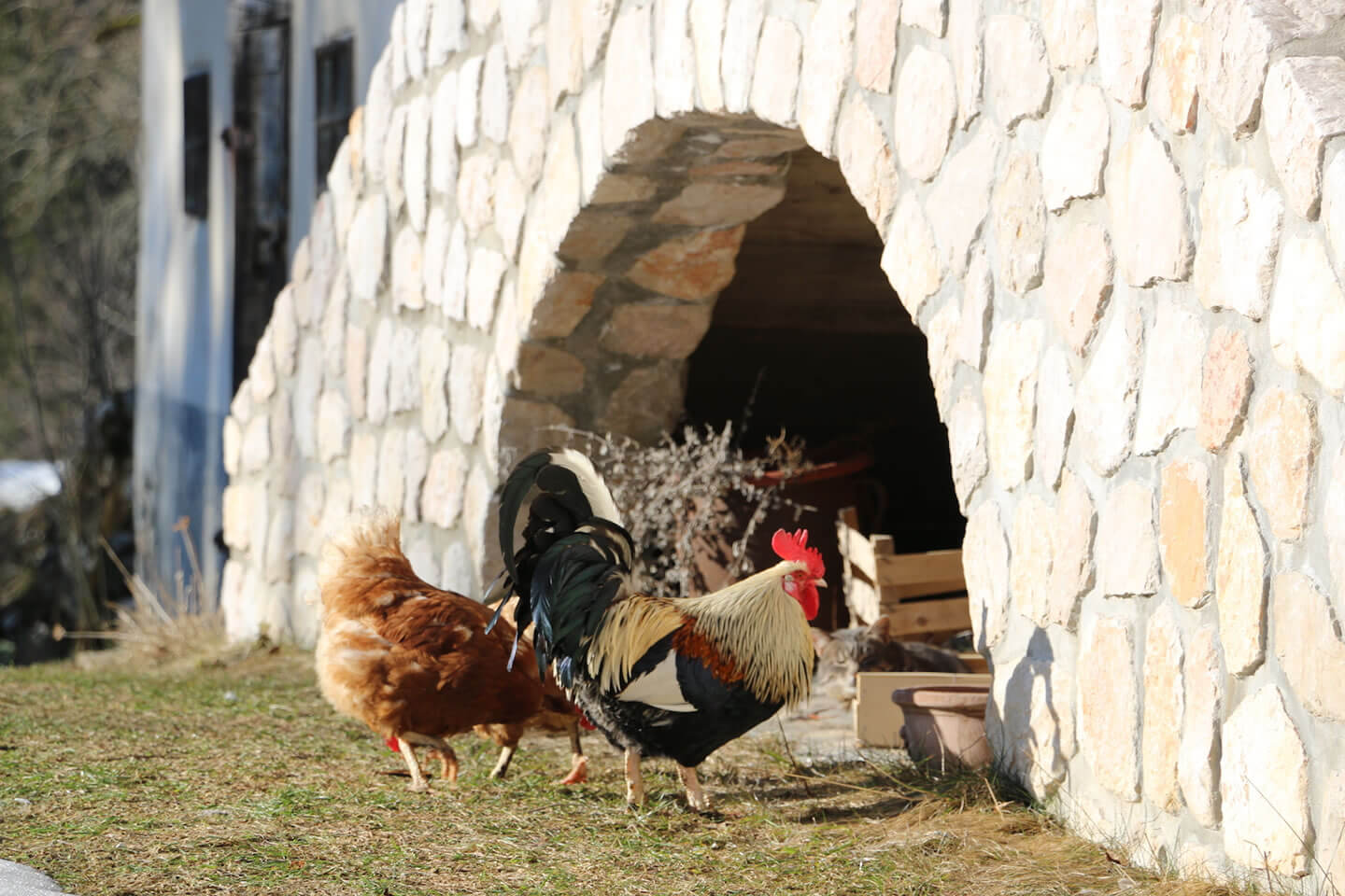 - Eigener Bio-Gemüsegarten und eigene Freiland-Tierhaltung