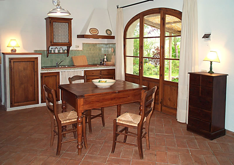 Der Gutshof bietet eine wundervoll rustikale toskanische Atmosphäre. Bei der Renovierung wurde auf ortstypische Baustoffe geachtet. So stammen das Holz für die Tür- und Fensterrahmen, die handgefertigten Terrakottaböden und die geschmackvollen Keramikfliesen aus der Region. Auch der Einrichtung wurde viel Aufmerksamkeit geschenkt. Die Möbel sind von Roberto im toskanischen Stil restauriert worden und geben jeder Ferienwohnung eine ganz persönliche Note.