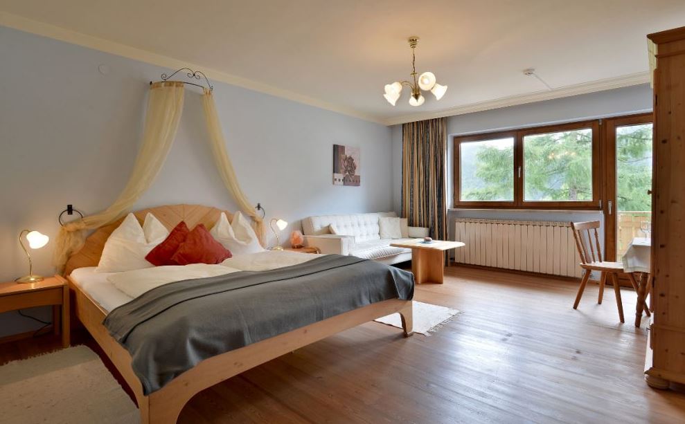 Das familiär geführte Haus ist komplett rauchfrei. Alle Zimmer sind mit Badewanne/WC oder DU/WC, Radio und Fernseher ausgestattet. Insgesamt gibt es ca. 38 Betten, meistens aus Zirbenholz. Die Bio-Nester (ca. 25 qm) und Panoramablick-Zimmer (ca. 20 qm), beide mit Holzboden und Balkon, sind zur Süd- oder Westseite gerichtet und bieten Panoramablick auf den Thiersee. Die Bio-Nester sind zusätzlich noch mit Sitzecke und Vollholzmöbeln ausgestattet. Die Spatzennester (ca. 22 qm) sind kleine Mansardenzimmer, ebenfalls zur Südseite, mit Vollholzmöbeln und -boden (ohne Balkon). Die Nordzimmer (ca. 18 qm) sind einfacher gehalten und verfügen auch über Holzboden und Balkon.