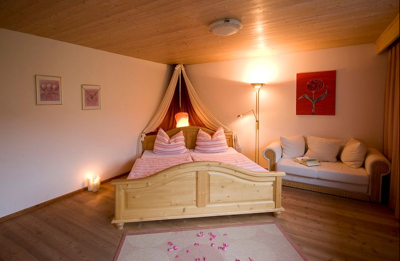 - Spatzennester (ca. 22 qm): kleine Mansardenzimmer zur Südseite, mit Vollholzmöbeln und -boden, ohne Balkon