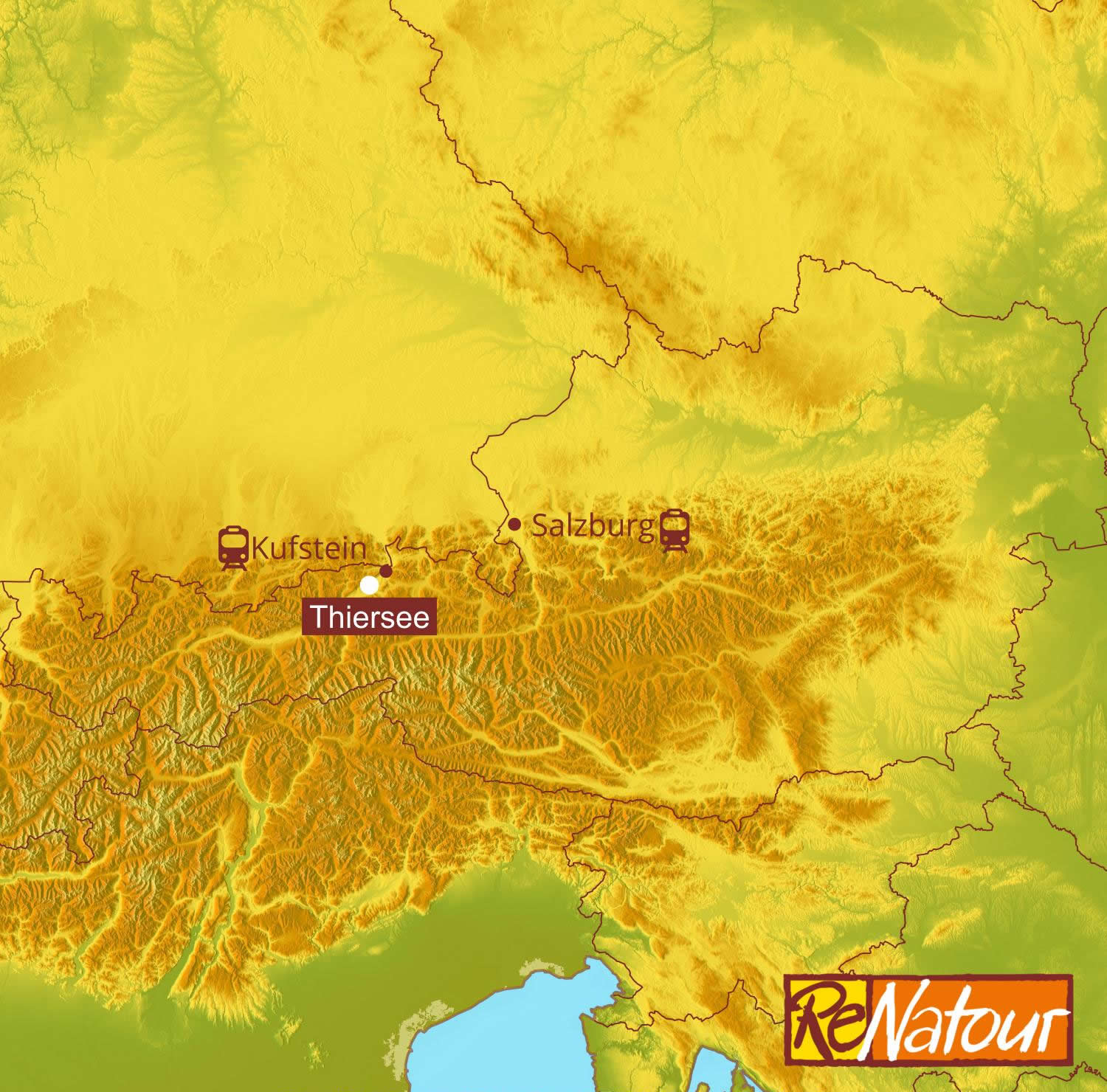- Mit dem Auto: Anreise bis Thiersee. Fahrzeit z.B. ab München ca. 1 Std. (ca. 100 km), Frankfurt ca. 5 Std. (ca. 500 km), Berlin ca. 7 Stunden (ca. 700 km), Hamburg ca. 9 Std. (ca. 900 km)