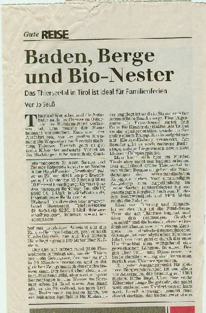 Anreise- Mit der Bahn: Anreise bis Kufstein (ca. 8 km von Thiersee entfernt), Fahrtzeit z.B. ab München ca. 1 Std., ab Frankfurt ca. 5 Std., ab Hamburg ca. 7,5 Std. Taxi ab Bahnhof Kufstein ca. 25 € pro Fahrt. Alternativ fährt auch ein Linienbus zwischen Kufstein - Thiersee (Fahrplan Regionalbus 4046)