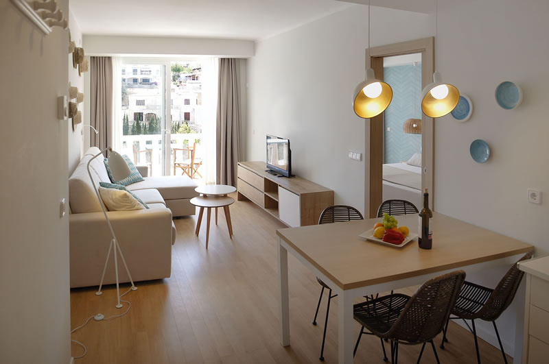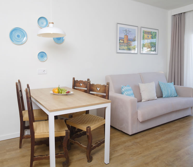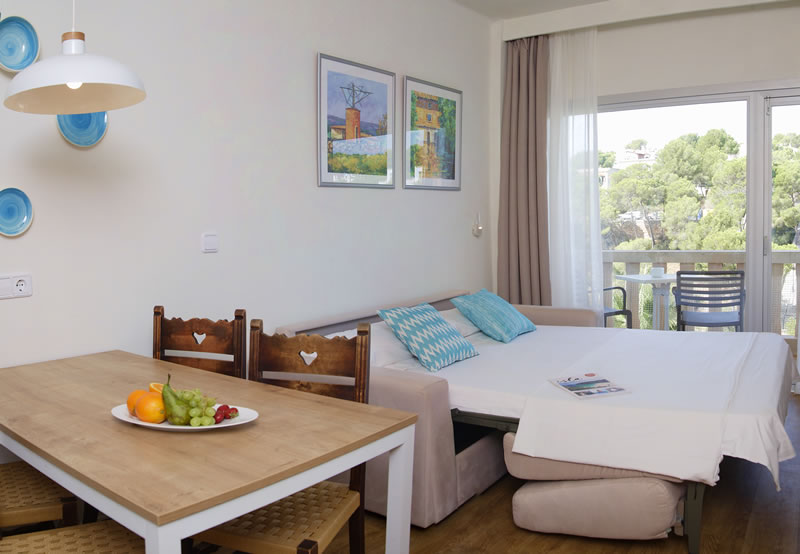 Im Familienhotel Cala Santanyi wohnen Sie komfortabel und gemütlich direkt an der hübschen, gleichnamigen Bucht. Die familiäre Anlage besteht aus zwei Gebäudeteilen mit insgesamt 72 Wohneinheiten. Ein Pool mit Kleinkindbecken sorgt für Abkühlung. Das Hauptgebäude liegt direkt am Strand und beherbergt die schicken (Junior-) Suiten mit Balkon und direktem Meerblick. Die Halbpension ist hier bereits inklusive. Im dahinterliegenden Gebäude befinden sich die Appartements und Studios zur Selbstversorgung (Verpflegung zubuchbar). Übersicht der Wohneinheiten.