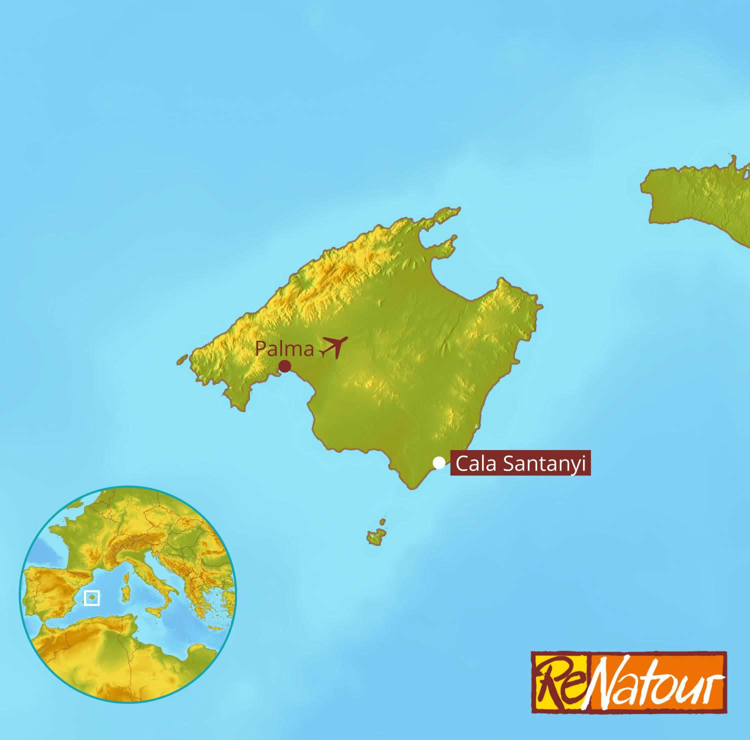 Der kleine, typisch mallorquinische Ort Santanyí, der Naturschutzpark von Mondragó, die idyllische Bucht von S’Almonia und der romantische Fischerhafen von Cala Figuera sind nur wenige Kilometer entfernt. In den Kulturlandschaften Mallorcas wechseln sich Oliven-, Johannisbrot- und Millionen von Mandelbäumen ab. In der Ebene gibt es Windmühlen mit alten Fincas, in den Bergen Klöster und Kapellen. Auch für Wanderer bietet die abwechslungsreiche Baleareninsel tolle Voraussetzungen: bizarre und zerklüftete Gebirgsformationen, Steineichen, Aleppo-Kiefernwälder und Dünenlandschaften laden zum Wandern und Staunen ein. .