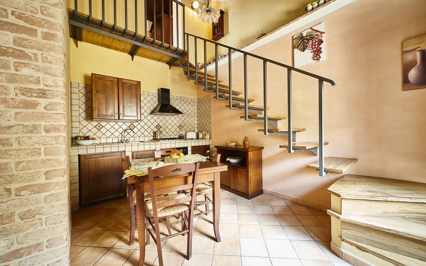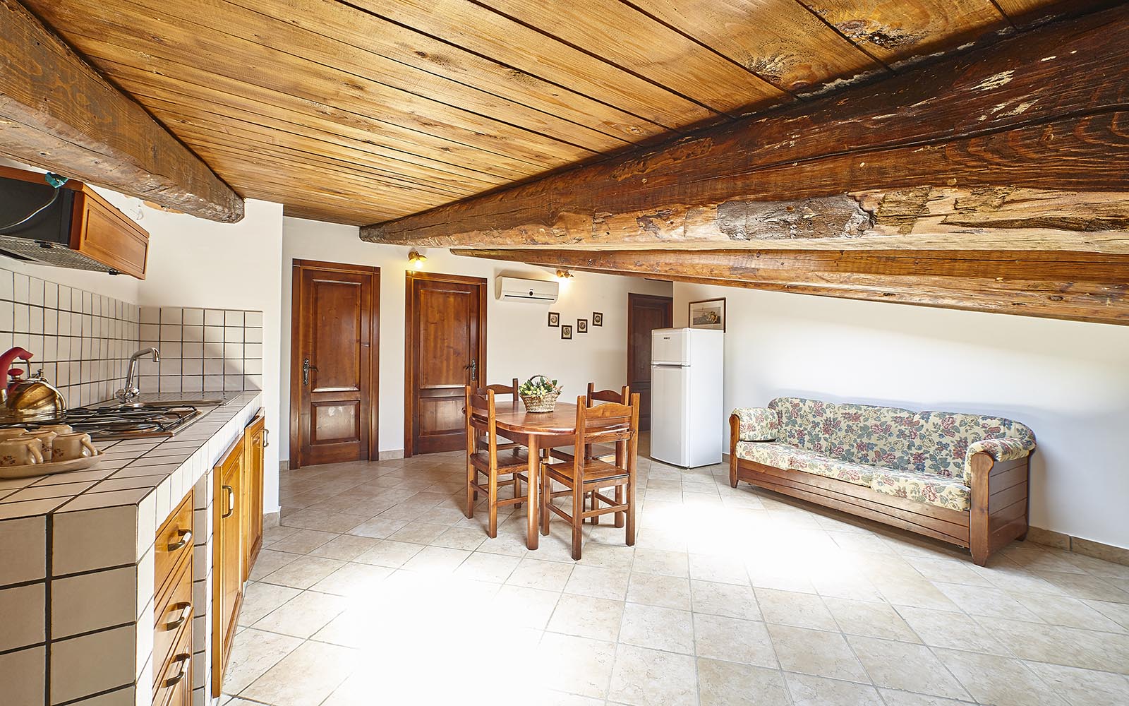 - La Quercia (100qm, bis 6 Pers.): Mansarden-Wohnung, 3 Schlafzimmer (2x Doppelzimmer, 1x 3-Betten), Wohnraum mit Kochnische, Bad, Klimaanlage