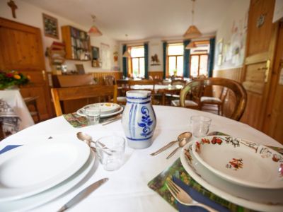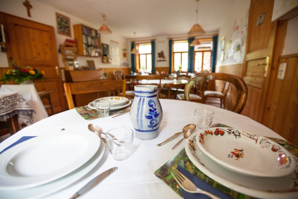 Vollwertige KücheIn der Küche kommen hauptsächlich regionale und saisonale Lebensmittel zum Einsatz. Das Fleisch sowie eine Vielzahl der verwendeten Lebensmittel stammen direkt vom Hof. Geschlachtet wird nach alten Eichsfelder Rezepten. Brot, Brötchen und Kuchen werden in der hofeigenen Backstube gebacken. Auf Nahrungsmittelunverträglichkeiten oder Allergien wird gerne eingegangen und natürlich können Sie auch vegetarisches Essen oder andere Kostformen (vegan, makrobiotisch...) erhalten. Die Vollpension beinhaltet das Frühstück, ein warmes Mittagessen oder auf Wunsch ein Picknickpaket und ein kaltes Abendbrot.
