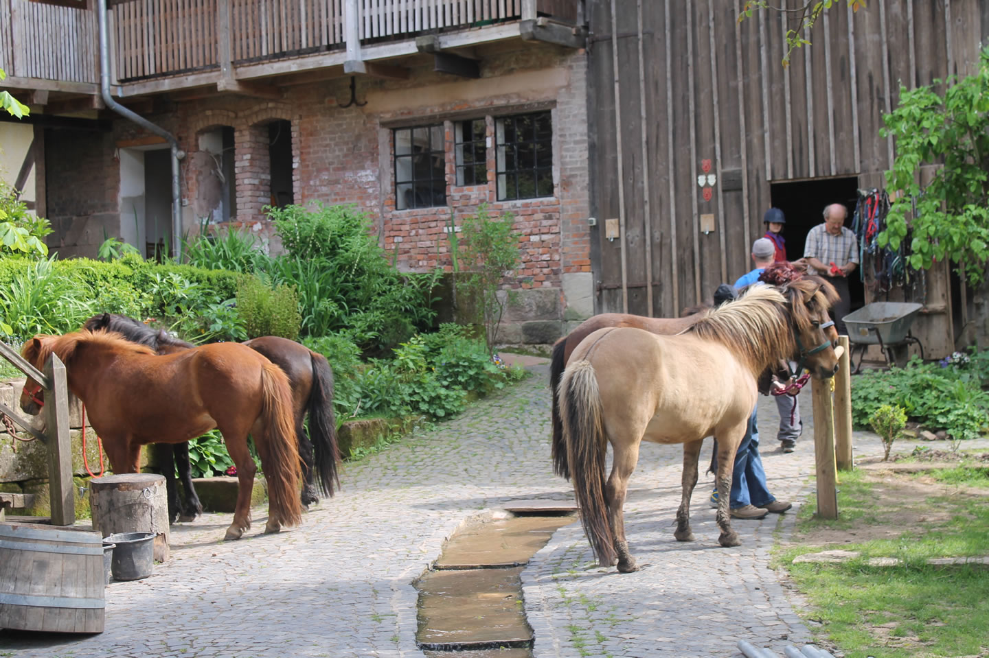 Der Demeter-Hof liegt idyllisch in einem kleinen Dorf ohne Durchgangsverkehr. Hinter dem Hof sprudelt die Gartenquelle, der Pferdebrunnen. Ein Gemüsegarten sorgt für die frische Versorgung der Gäste mit Vitaminen. Auf dem im Nebenerwerb geführten Bauernhof werden neben Pferden, Islandponys, Hunden und Katzen auch verschiedene andere Tiere artgerecht gehalten. Die Freigelände und Stallungen für die Tiere befinden sich bis zu 1 km von Wohnhaus und Gästepension entfernt.