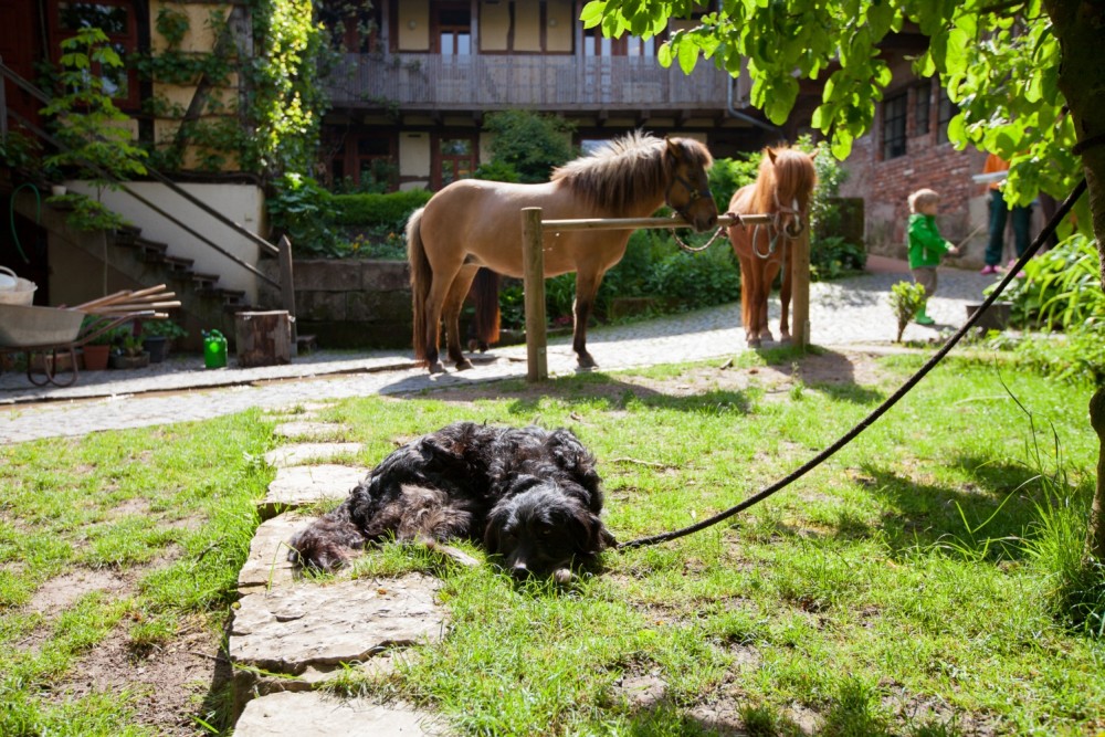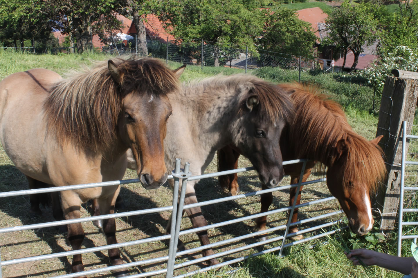 - Ponys, Katzen, Schafe, Hühner und Hofhund