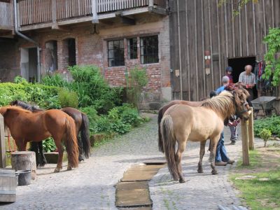 Reiten und ReitunterrichtVor Ort können Sie verschiedene Reitkurse buchen. Der Betreiber des Hofes ist Heilpädagoge und betrachtet den Umgang mit Pferden ganzheitlich. Es geht nicht nur darum, aufs Pferd zu kommen, oben zu bleiben und voran zu kommen, sondern vor allem darum, wie sich Mensch und Pferd gemeinsam wohl fühlen.