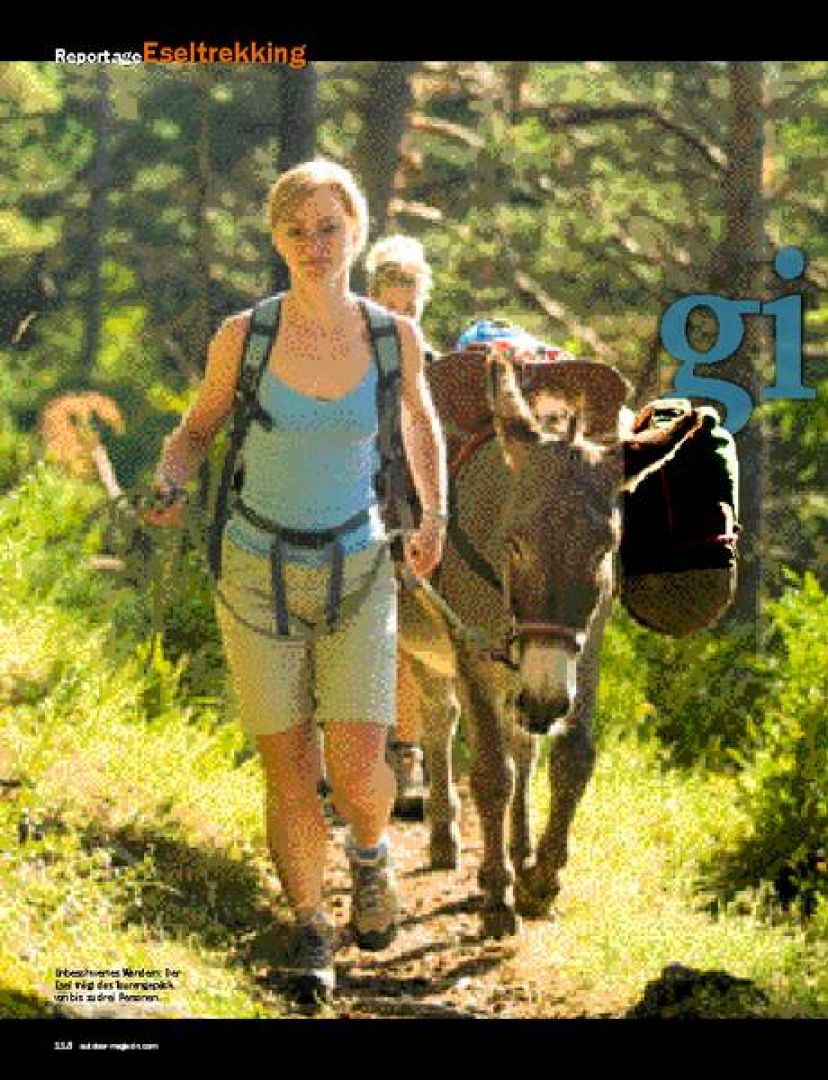 Outdoor von Katharina Hübner20.03.2009Zwischen zwei Eseln müssen wir uns entscheiden: Einem zartgliedrigen, fast schwarzen Pyrenäenesel und einem kräftigem Grautier mit langen Ohren wie im Bilderbuch, genannt Gideon. Den Ausschlag für die Entscheidung liefert, ohne es zu wissen, ein Journalist aus England........ (lesen Sie weiter im pdf!) -