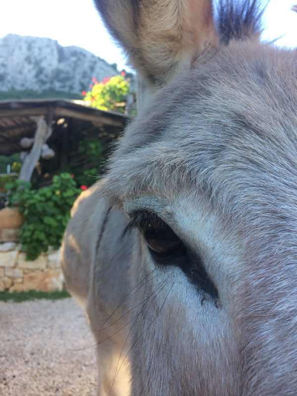 Die kleinen grauen oder braunen Esel gehören schon seit jeher zum Alltag auf Sardinien. Als Lasttier und Transportmittel waren sie früher gerade hier in der bergigen und felsigen Ogliastra kaum wegzudenken. Nur wenige konnten sich damals ein Ochsengespann leisten und auf den schmalen und steilen Wegen der Gegend kam man damit auch nicht unbedingt gut voran. Die trittsicheren Esel hingegen trugen die Ausrüstung der Schafhirten während der Transhumanz über Stock und Stein, mit dem Esel brachten die Kinder Verpflegung und andere Utensilien zu den Hirten in die Berge, Esel wurden eingesetzt, um das Mühlrad zu drehen und Wasser zu schöpfen und auf den Eseln wurde Holz und Kohle in die Dörfer und zu den Häfen am Meer geschafft.