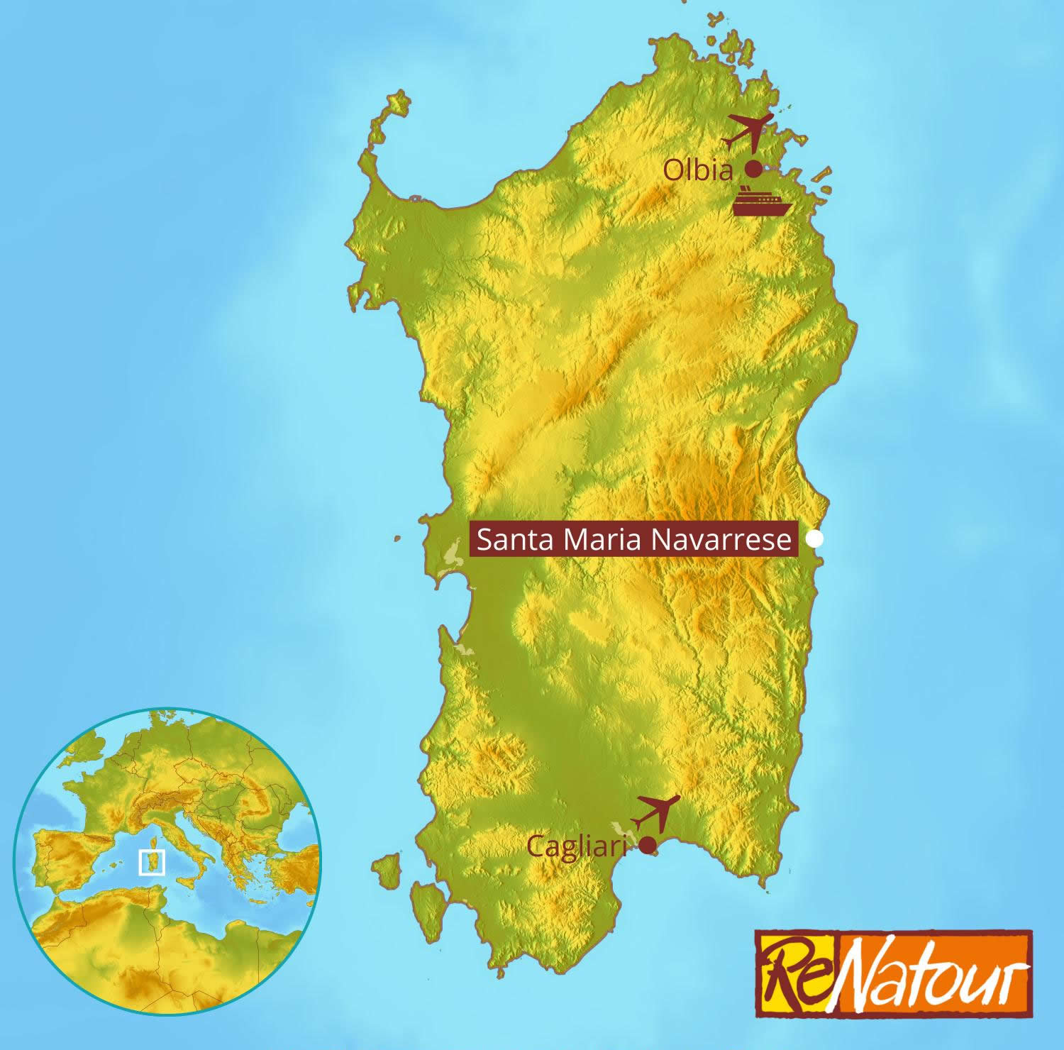Anreise- Mit Auto und Fähre: Autofahrt bis zu einem geeigneten Fährhafen, z.B. von München zum Fährhafen Livorno/Italien (Autofahrt ca. 7 Std., ca. 740 km) oder von Frankfurt zum Fährhafen Genua/Italien (Autofahrt ca. 8 Std., ca. 800 km). Fährüberfahrt Livorno- Olbia (ca. 6-7 Std.) oder Genua- Olbia (ca. 9-10 Std.). Vom Fährhafen Olbia sind es noch 190 km Autofahrt bis Santa Maria Navarrese. In Ihrer ersten Unterkunft stehen kostenlose Parkplätze zur Verfügung.