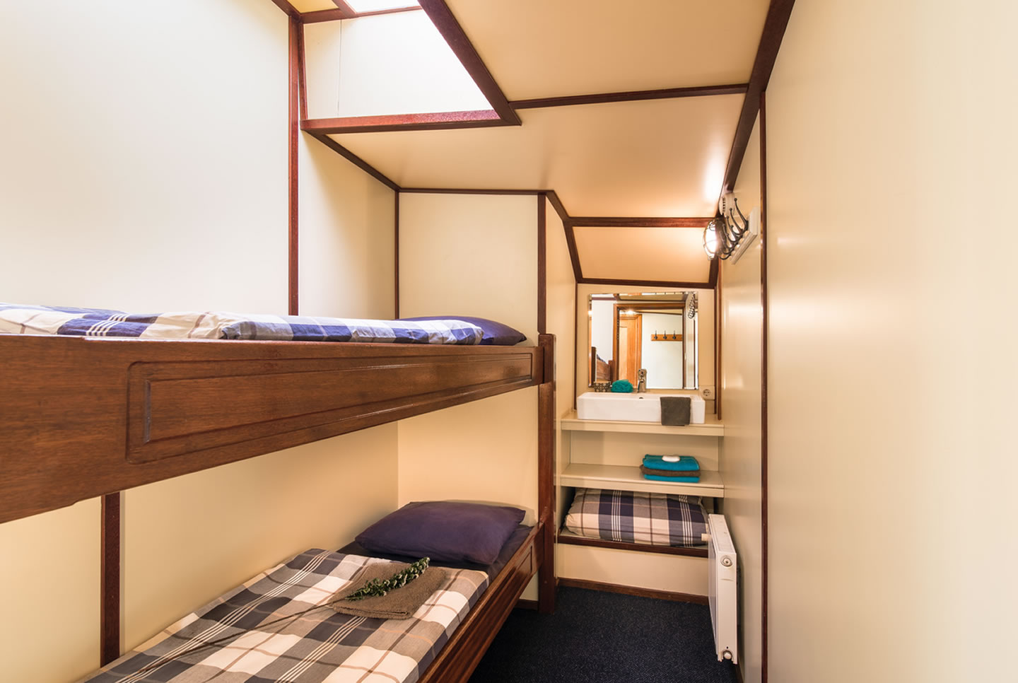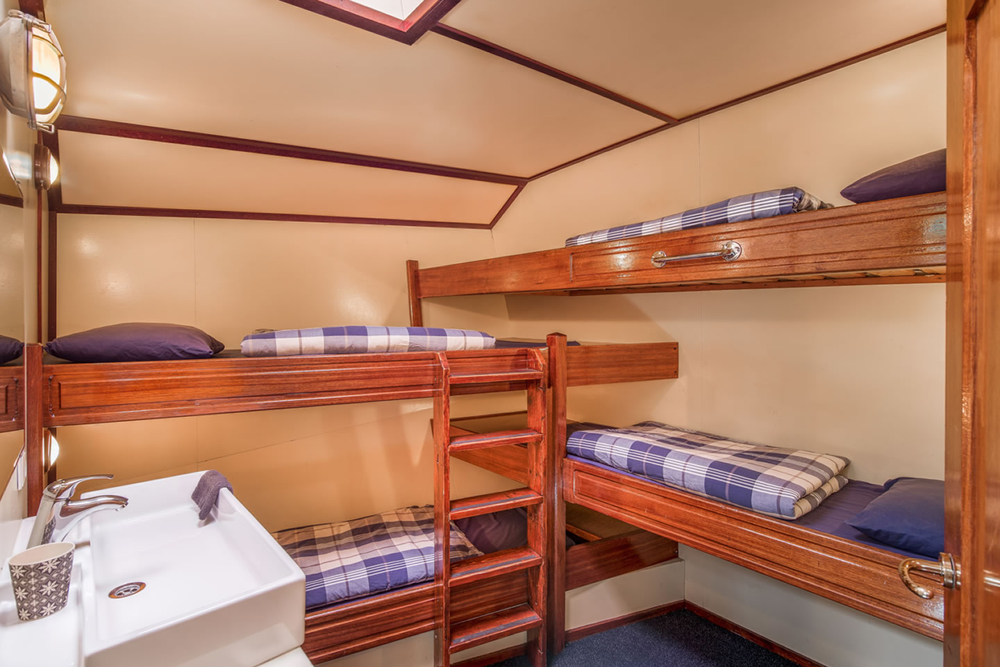 Die hellen Kajüten, unterschiedlicher Größe, verfügen über Schlafplätze für zwei bis sechs Personen (2-, 3-, 4- oder 6-Bett), sowie eine Waschgelegenheit. Toiletten und Duschen stehen an Bord und in den Häfen zur Verfügung.