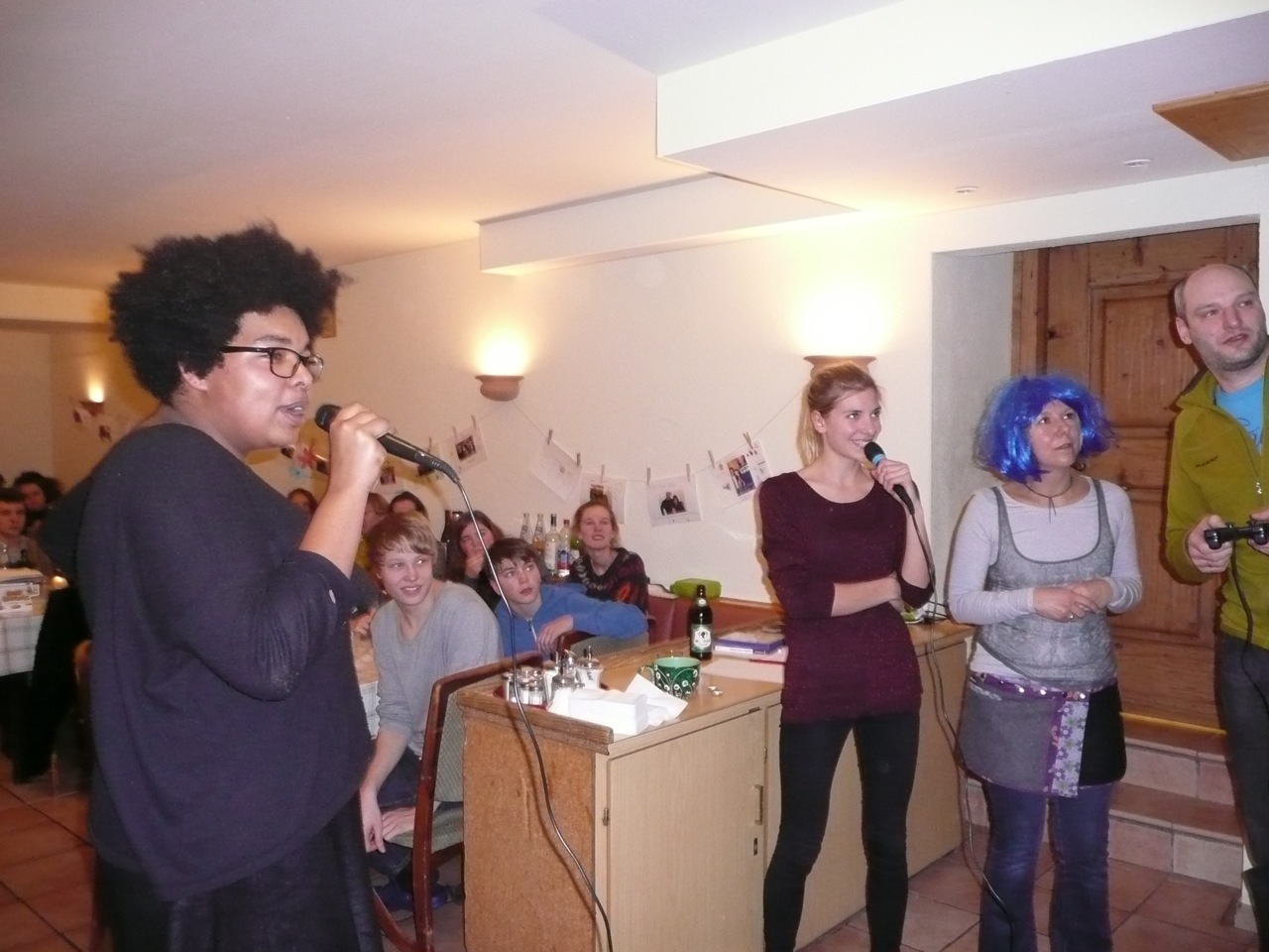 Unsere Gästebetreuer unterhalten am späten Nachmittag mit Musik und Theater, Spaß und Spiel alle Kinder ab fünf Jahren (und erfahrungsgemäß auch viele Erwachsene). Nach dem Abendessen gibt es auch mal eine Gute-Nacht-Geschichte. Abends, wenn die Kinder schlafen, sitzen die Großen meist gemütlich zusammen, machen einen Ausflug nach Hirschegg oder gehen in die Sauna (in Hirschegg; Bezahlung vor Ort). Höhepunkt der Woche ist dann die große Silvesterparty!