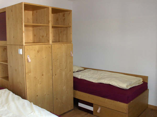 Die sehr einfach ausgestatte Jugendpension hat Doppel- und Mehrbettzimmer (meist Stockbetten), z. T. mit Waschbecken. Ausreichend Duschen und WCs sind auf der Etage vorhanden. Jede Familie bekommt ein eigenes Zimmer. Familien mit einem Erwachsenen teilen sich das Zimmer evtl. mit einer zweiten Klein-Familie. Auch eine kleine Anzahl von Doppelzimmern mit DU/WC (gegen Aufpreis), zwei gemütliche Aufenthaltsräume, ein beheizter Skistall und ein großer Mehrzweckraum (Tischtennis, Haus-Disco) stehen zur Verfügung. Einen Zimmer-Service gibt es nicht.