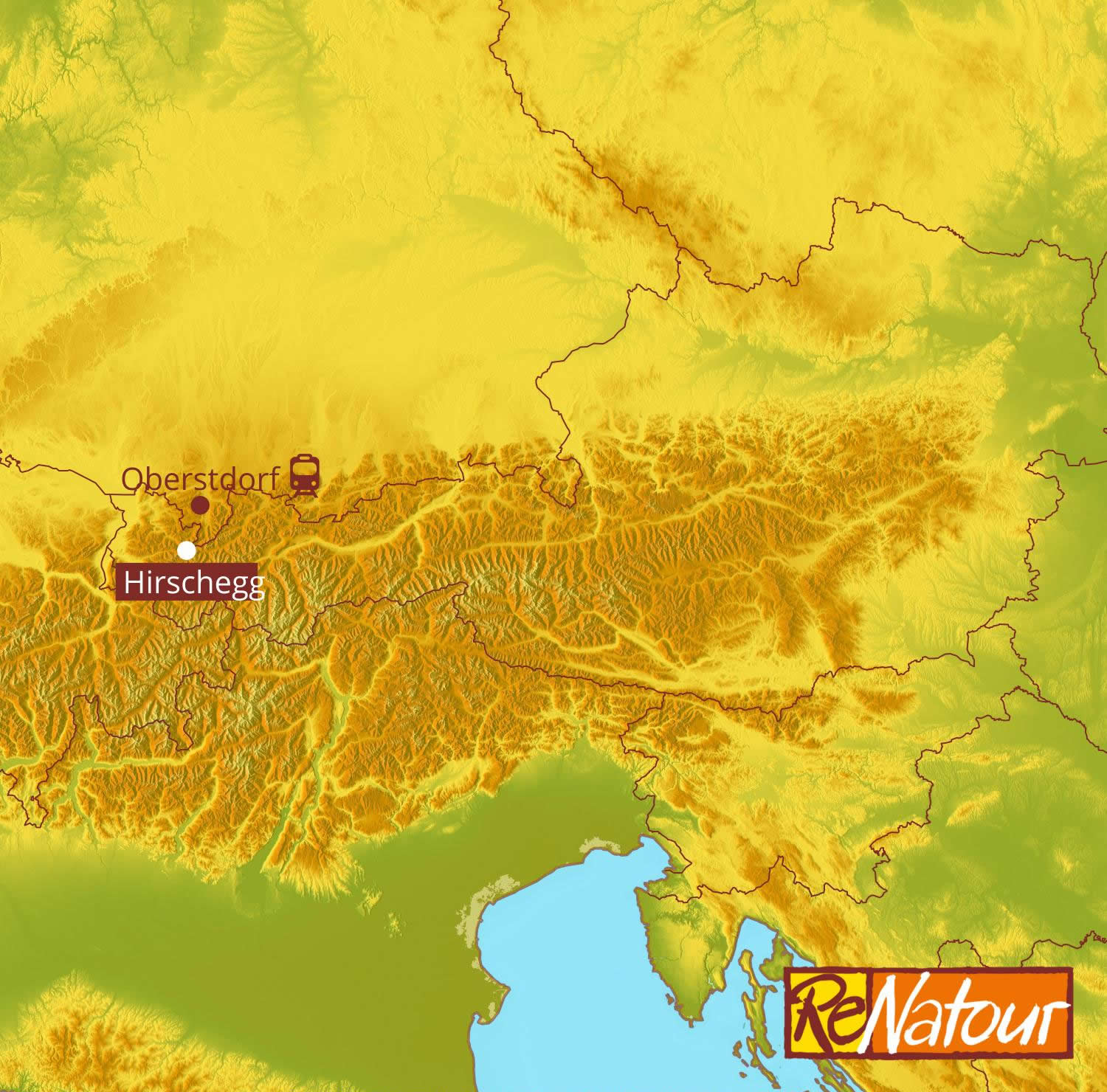 - Mit dem Auto: Fahrt bis Hirschegg (Fahrzeit z.B. ab München ca. 2,5 Std./170 km, ab Frankfurt ca. 4 Std./430 km). Für das letzte Stück zur Unterkunft ab Hirschegg sind bei Schneefall Schneeketten vorgeschrieben!