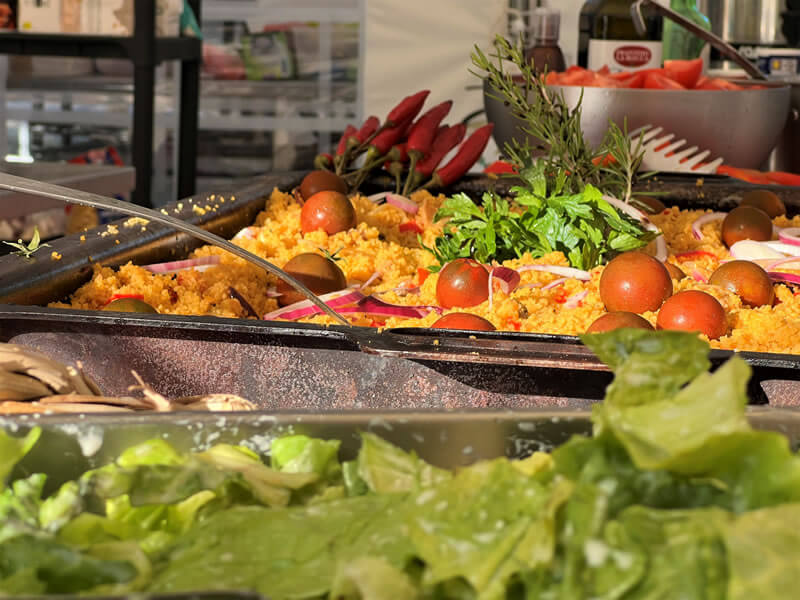 - Überwiegend lokal und regional: Abendessen mit warmen Gerichten und Salaten in Buffetform. Vegetarische Variante immer optional.
