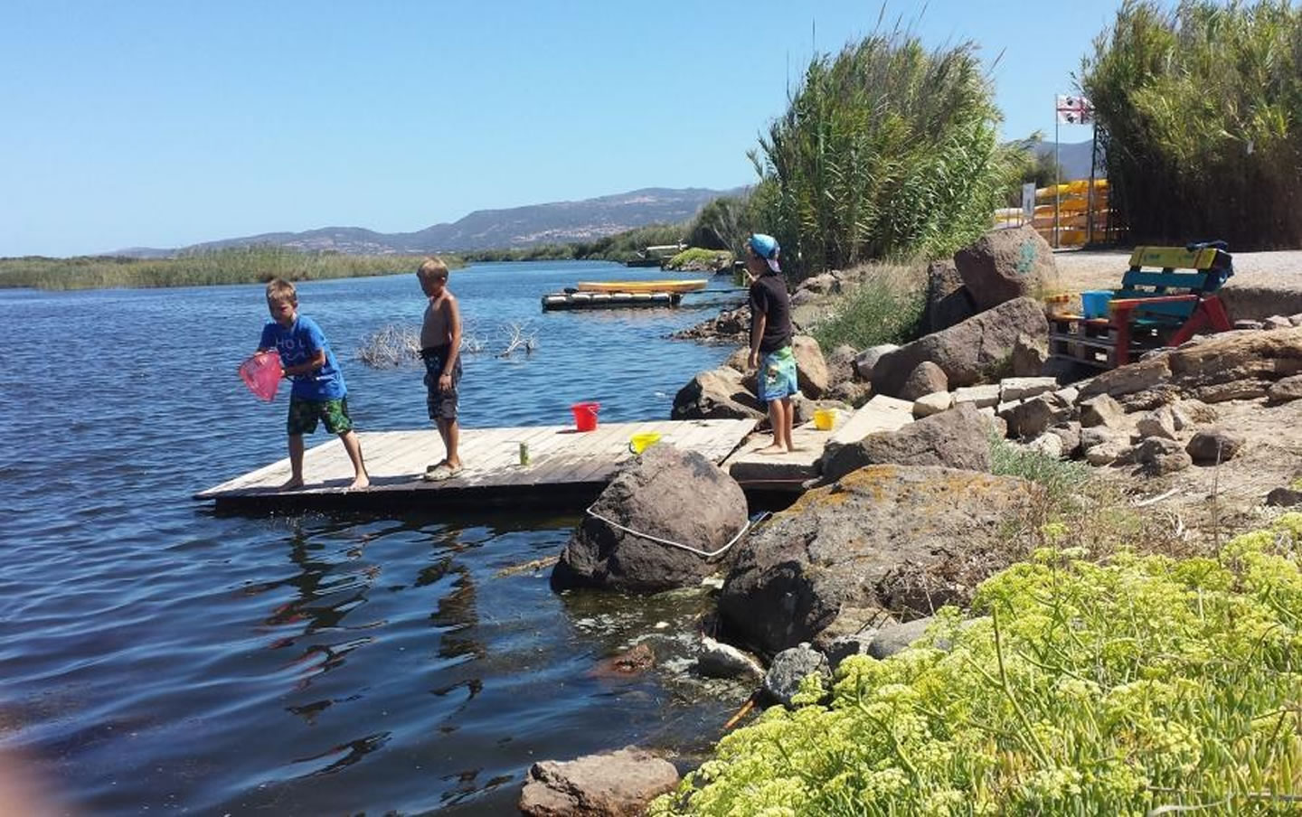 Baden im Meer oder im Pool: entweder im kristallklaren und erfrischenden Wasser des Mittelmeeres, im kostenfreien Pool auf dem Campingplatz (mit großem Becken für Schwimmer und kleinerem Becken mit Rutschen für Kids, Badekappenpflicht) oder aber im Süßwasser der Lagune direkt vor der Haustür des Camps.