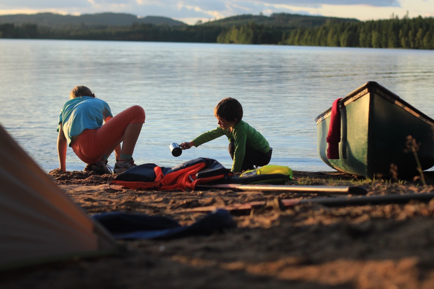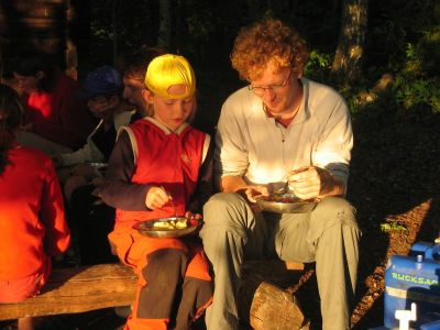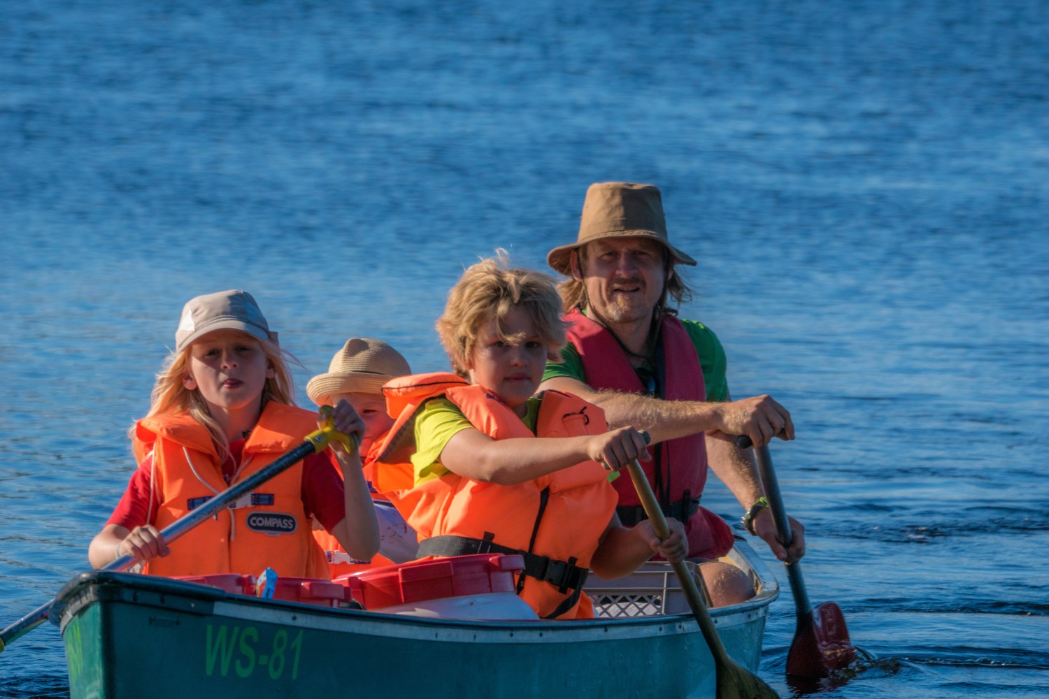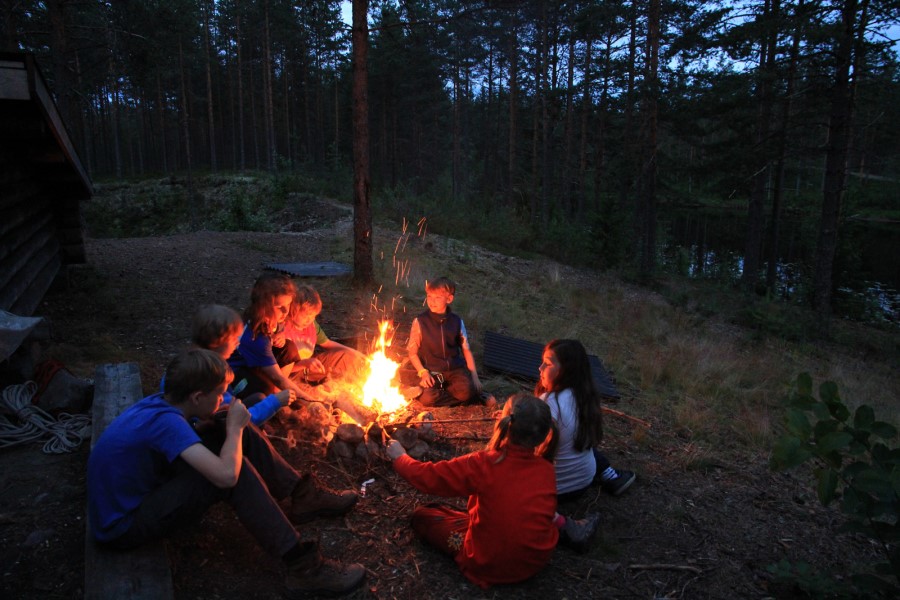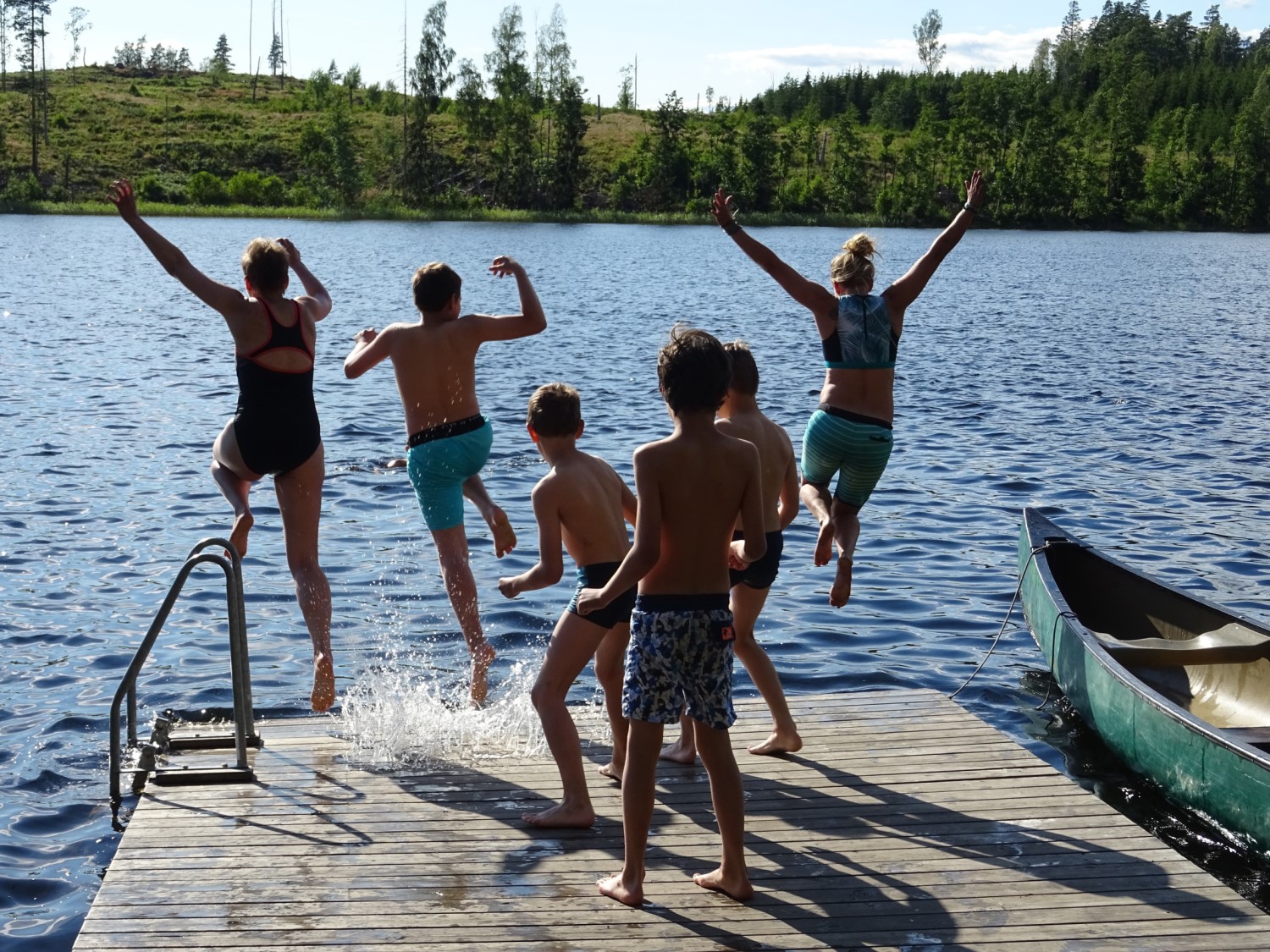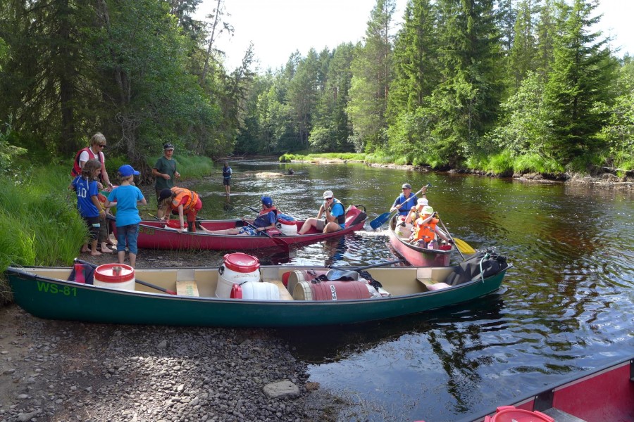 Die familienfreundliche Anlage ist umgeben von herrlicher Natur, die zum Wandern und Paddeln einlädt. Fast täglich bieten wir geführte Touren und Aktivitäten an. Dazu zählen u.a. Floßbau und Floßfahrt am Klarälven, eine Kanutour auf dem See Mangen, eine Wanderung am Hovfjället und der Finnskogen-Wettkampf mit Bogenschießen, Sommerski und anderen Spielen. Die Teilnehmer erwartet ein buntes Programm, das viele Interessen berücksichtigt. Eltern und Kinder haben aber auch Freiräume zum Ausruhen, für optionale Aktivitäten und gemeinsame Aktionen und Ausflüge. Beliebt sind bspw. Besuche der Huskyfarm in Fensbol oder der Elchfarm in Ekshärad mit Wanderung am Brattfallet-Wasserfall. In den umliegenden Gewässern findet man schöne Badestellen und fischreiche Angelreviere. In der dünn besiedelten Region erinnern alte Gehöfte und „Rauchhäuser“ an die Wald-Finnen, die den Norden Värmlands seit 1640 besiedelten. Liebevoll arrangierte Heimatmuseen, in denen die Dorfbewohner Waffeln und Geschichten servieren, erfreuen das Herz. Die Sauna kann kostenfrei genutzt werden. Am Abend trifft sich die Gruppe gerne am Lagerfeuer oder in der Vildmark-Scheune.