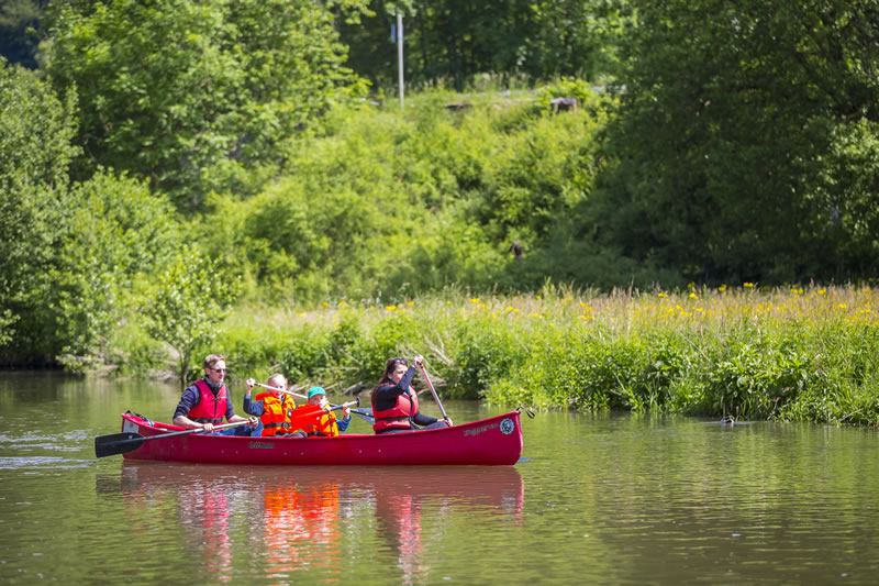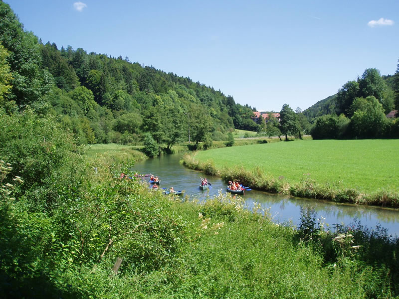 Erlebt im Familienurlaub in Franken eine der schönsten Kanutouren Deutschlands! Der Fluss schlängelt sich malerisch durch Dörfer und Wiesen, teilweise ist er so von Bäumen eingewachsen, dass man sich wie im Dschungel fühlt. Ihr werdet von den Ästen uralter Flussweiden regelrecht umzingelt. Kleinere Stromschnellen und enge Kurven machen das Abenteuer perfekt!