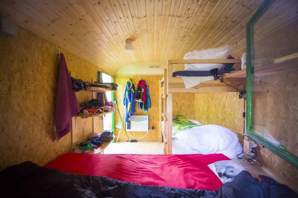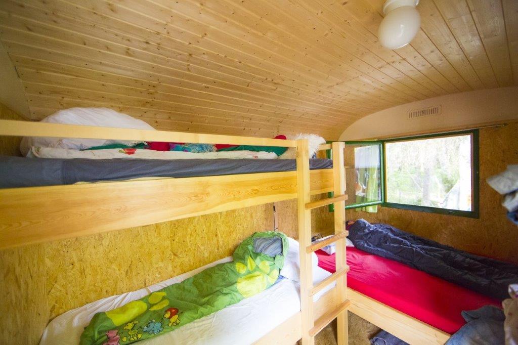 - Miet-Bauwagen (für 2-4 Personen mit uriger Ausstattung aus Holz, Doppelbett 140x200 cm, Stockbett mit 2 Betten 90x200 cm bzw. Hochbett, Heizung, Licht, Ablagen, Strom)