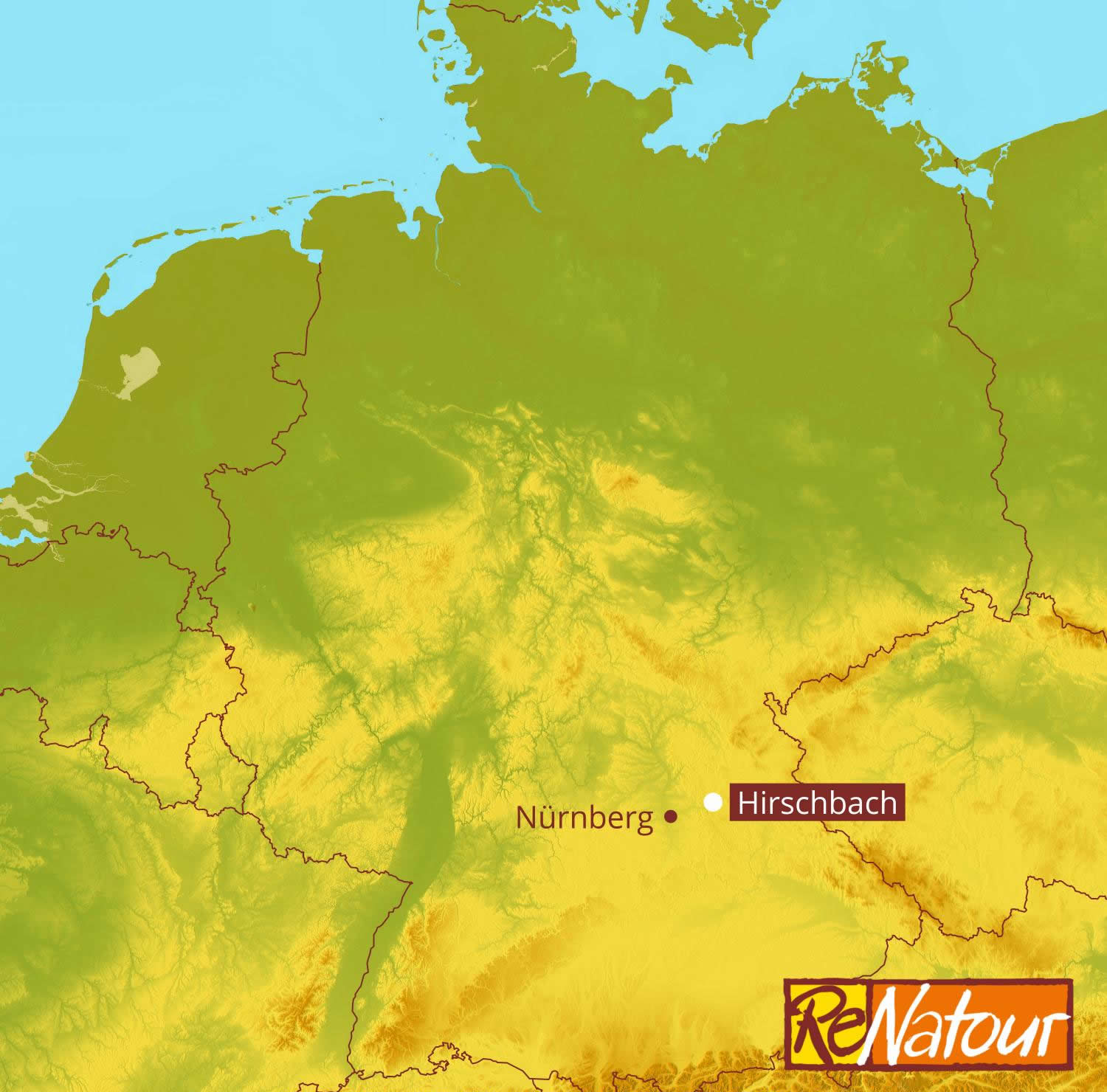 - Mit der Bahn: Bahnfahrt bis Nürnberg Hbf. (Fahrzeit z.B. ab München ca. 1 Std., ab Frankfurt ca. 2 Std., ab Hamburg ca. 4,5 Std). Weiter mit dem Nahverkehrszug nach Hohenstadt (Fahrzeit ca. 40 Min.). Dann mit dem Taxi bis Hirschbach (ca. 10 Fahrminuten). Wir empfehlen jedoch die Anreise mit dem eigenen Auto, da die Startpunkte einiger Aktivitäten nicht mit dem ÖPNV erreicht werden können.