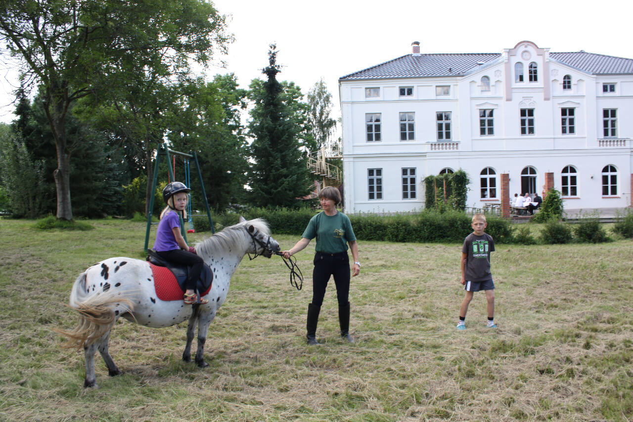 Familienurlaub in Deutschland in einem stilvollen Herrenhaus an der Mecklenburgischen Seenplatte. In den Sommerferien wird ein naturbezogenes und abwechslungsreiches Kinderprogramm angeboten. Zum hauseigenen Badesee sind es nur ca. 500m.