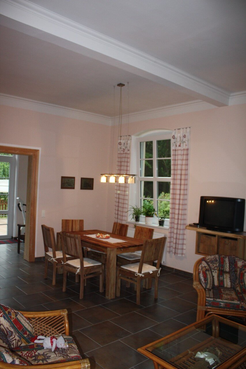Typ G: 3-Raum- Wohnung (6 Pers.), ca. 120 qm, Wohnküche, zwei Schlafzimmer, z.T. bedingt behindertengeeignet, im ca. 50 m entfernten Kavaliershaus gelegen. Bei einer Belegung mit max. 4 Pers. gelten die Preise von Typ F (gilt nur, wenn nur ein Schlafzimmer genutzt wird) - Alle Wohnungen verfügen über eine eigene Küche oder Küchenzeile, Bad/WC, TV, Ausstattung mit Bettwäsche und Handtüchern und einen Freisitz auf einer Gemeinschaftsterrasse am Haus.