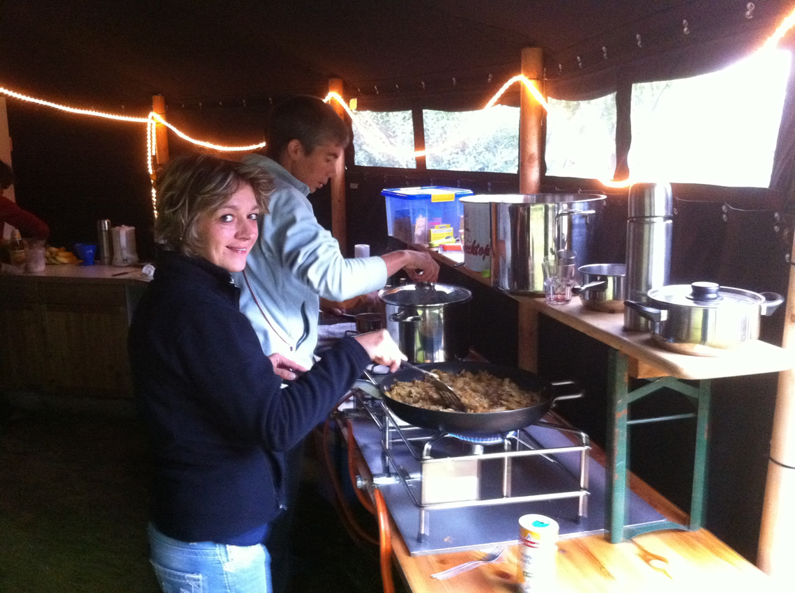 Die komplette Verpflegung inklusive Frühstück, Mittag- und Abendessen sowie Getränken ist nicht im Reisepreis inklusive. Vor Ort ist eine Campkasse eingerichtet, in die pro Person ein Betrag von € 60 eingezahlt wird. Die Campleitung kauft die Lebensmittel aus dem Budget der Campkasse ein und ist bei der Organisation des Küchendienstes behilflich. Die Mahlzeiten werden nach einem festgelegten Speiseplan gemeinsam in der Campküche zubereitet. Vorbereiten, Kochen, Spülen und Aufräumen ist Aufgabe der ganzen Gruppe. Sämtliche Küchenutensilien werden gestellt. Details finden Sie in unseren Infos unter "Verpflegung".