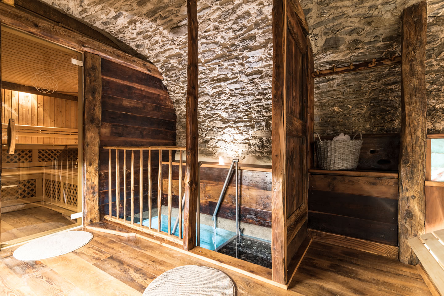Das Öko-Feriendorf verfügt außerdem über einen kleinen aber feinen Wellness-Bereich mit finnischer Sauna, Quellwasserbecken sowie Entspannungsbereich. Das alte Steingewölbe und der Zirbelkiefergeruch schaffen eine angenehme Atmosphäre zum Entspannen nach einem aktiven Tag.