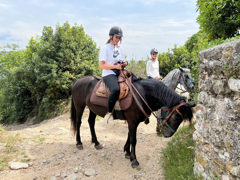 Erfahrene Reiter ab 14 Jahren können an einstündigen oder mehrstündigen Ausritten teilnehmen. Alle Ausritte werden durch einen ortskundigen Guide begleitet. Das Reiten im abwechslungsreichen Gelände des Naturparks Alto Garda Bresciano macht die Touren zu unvergesslichen Erlebnissen. Die Pferde - überwiegend der Rasse Maremmanos (große Pferde!) - sind gut trainiert, trittsicher, ausdauernd und brav. Für Kinder zwischen 4-10 Jahren gibt es Aktivitäten mit Ponys.