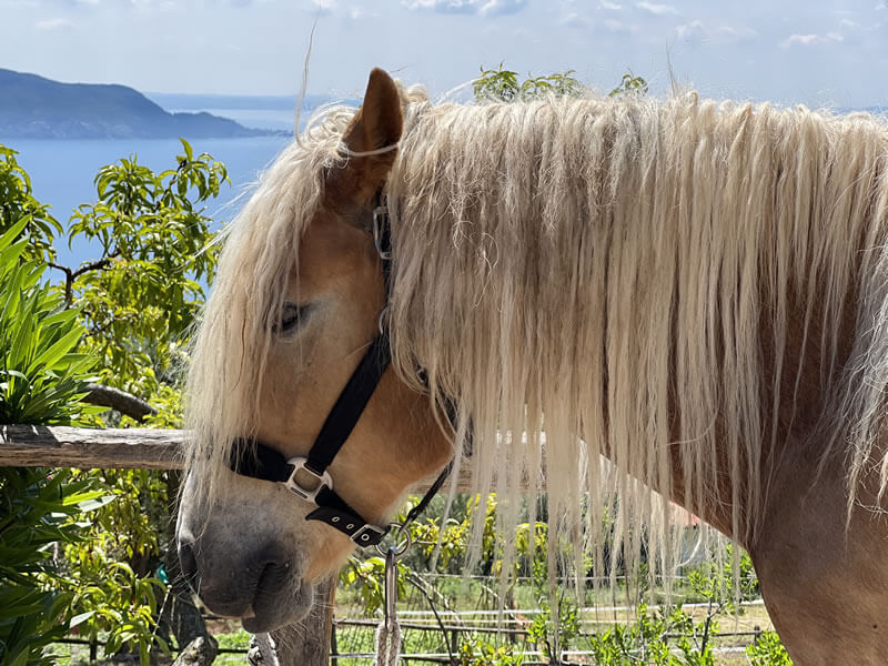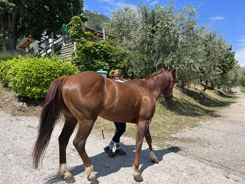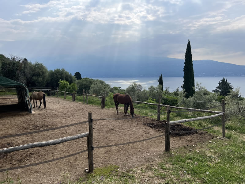 Unser familiärer Reiterhof in Italien befindet sich ca. 200 m über dem Gardasee nahe des kleinen Örtchens Gaino. Das Gelände erstreckt sich über ca. 40 Hektar mit Olivenhainen, Weiden und Feldern.