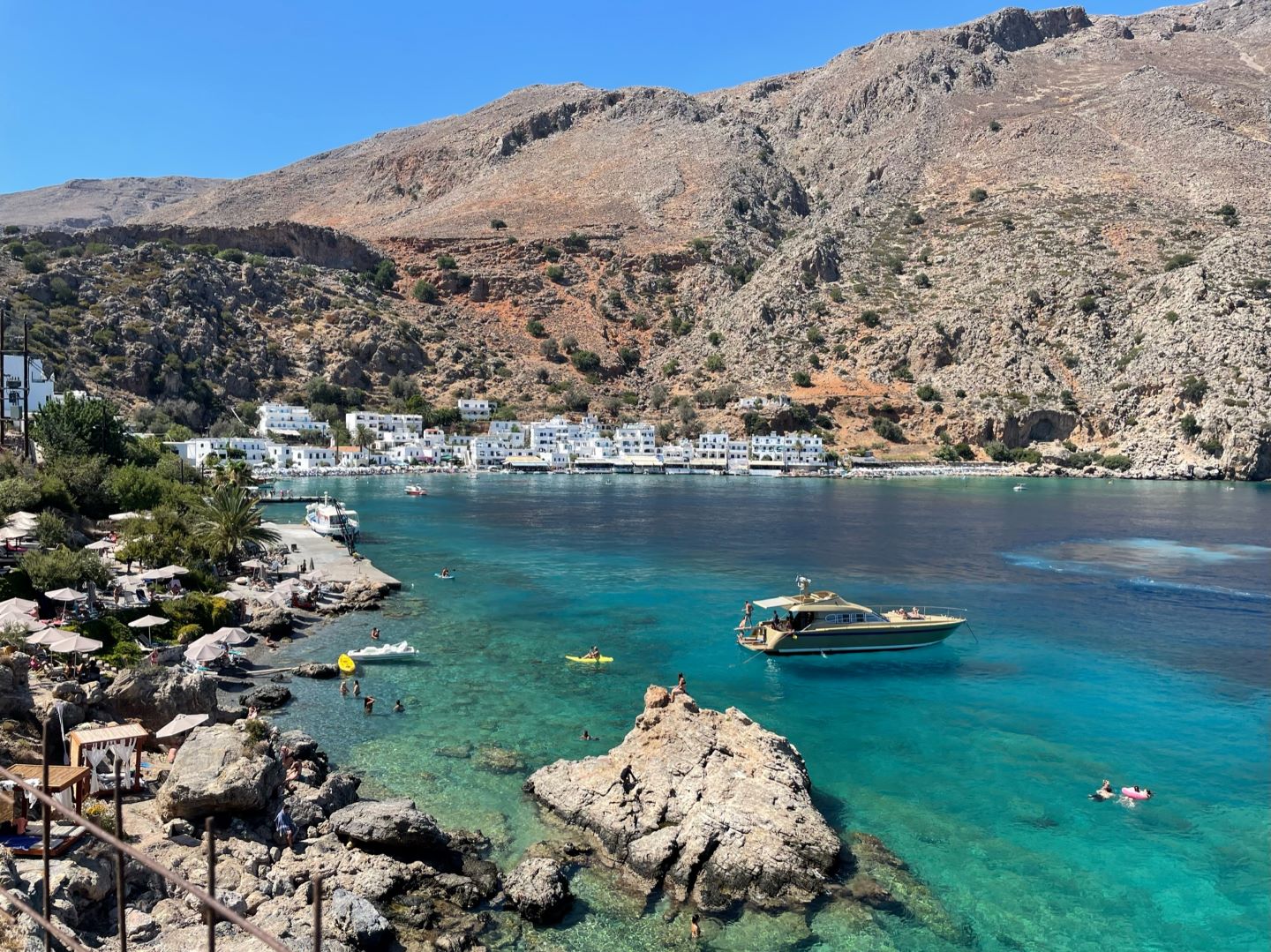 - Soudabucht: Schirm und 2 Liegen können gemietet werden