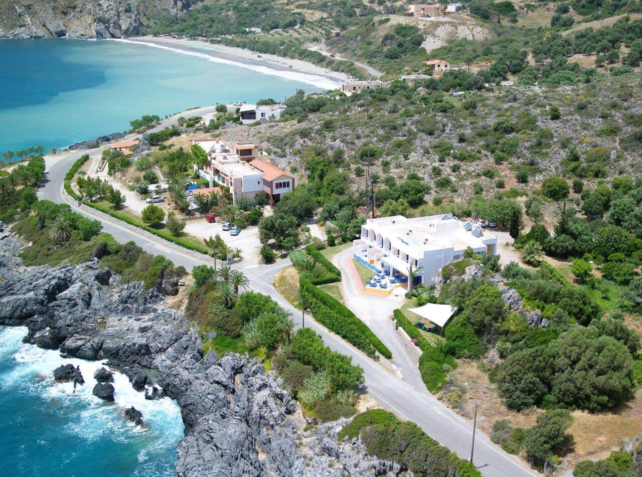 Der Badeort Plakias ist ca. 3 Kilometer entfernt und auf einer nicht allzu stark befahrenen Straße zu Fuß zu erreichen (oder mit dem Taxi). Einst von Rucksacktouristen als Geheimtipp gehandelt, hat sich um den Ort eine Region für Individualtouristen mit herrlichen Sandstränden und einer guten Infrastruktur entwickelt. Hier findet man viele Tavernen, Einkaufsläden, Cafés, uvm.
