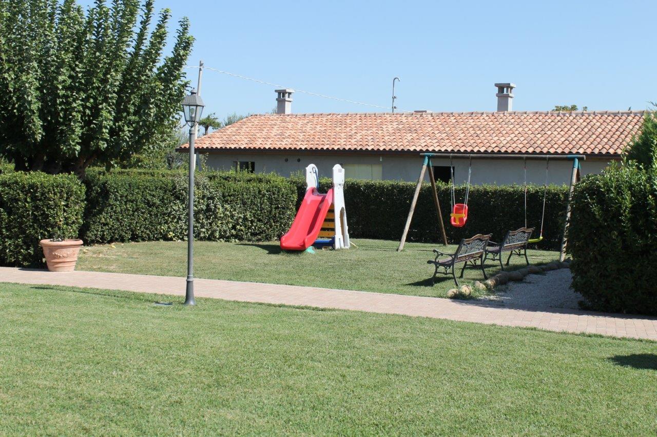 Das weitläufige Gelände bietet viel Platz zum Toben und Bolzen für Ihre Kinder. Ein kleiner Spielbereich mit Schaukel und Rutsche ergänzt das Angebot auf dem ehemaligen Geflügelhof. Der Pool verfügt über einen flacheren Bereich, so dass auch Kleinkinder das kühle Nass genießen können. Die geübteren Schwimmer können ein paar Bahnen ziehen. Fahrräder in verschiedenen Größen stehen kostenfrei zur Verfügung. Der lange, flache Sandstrand von Torrette ist ca. 25 km entfernt - hier können Ihre Kinder nach Herzenslust Sandburgen bauen. Zu den Ferienzeiten von Ostern bis Herbst ist das Landhaus ein beliebtes Ziel für Familien, so dass sich fast immer Spielkameraden für Ihre Kinder finden.