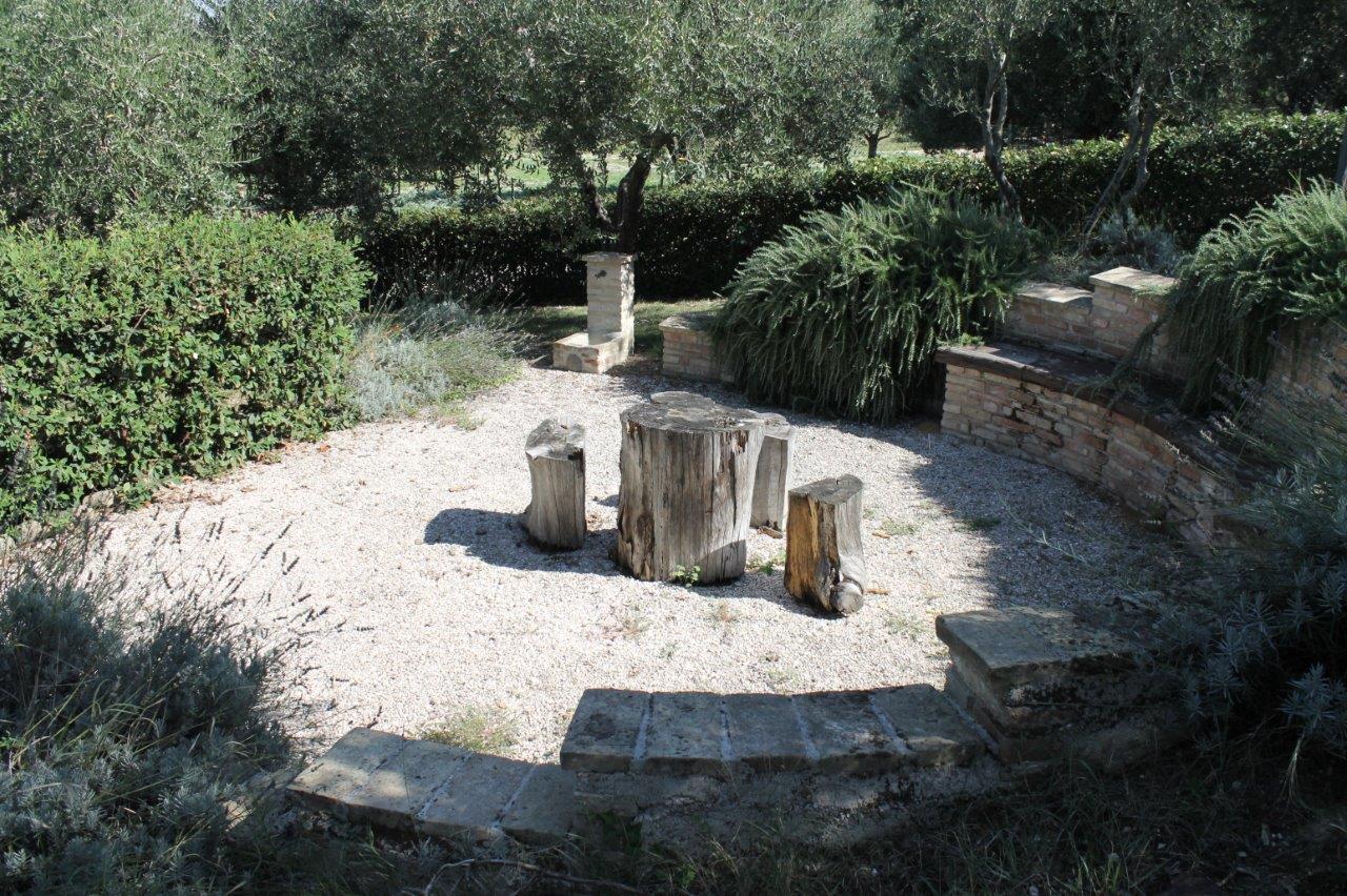 Das Farmhaus befindet sich mitten in der idyllischen Natur der Marken eingebettet zwischen Wiesen und Feldern. Das weitläufige Gelände besteht aus einer großzügigen Gartenanlage, den beiden Appartementhäusern, einem Pool, einem Spa und einem Restaurant. In der etwas abseits angelegten Ruhezone - ein Ort mit Sitzmöglichkeiten inmitten eines kleinen Olivengartens mit vielen wild wachsenden, duftenden Kräutern - finden Sie auch ein ruhiges Eckchen für sich, wenn Sie Ihren Gedanken nachhängen, in Ruhe ein paar Meditations-/Yoga-Übungen machen möchten oder einfach die Aussicht genießen wollen.