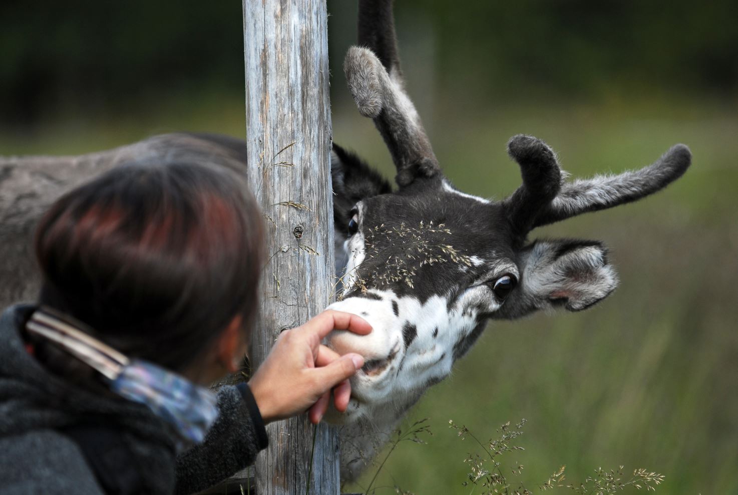 Sie haben Gelegenheit, bei der Fütterung der Rentiere mitzuhelfen und den Kontakt zu den Tieren zu vertiefen. Im Rahmen des anschließenden "Rentiertrainings" erhalten Sie eine Einweisung bezüglich des Anlegens der Ausrüstungen und des Führens eines Rentieres. Danach wird das Erlernte selbständig erprobt.