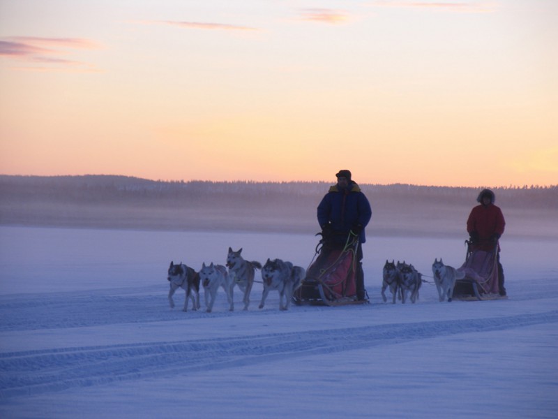 Mit dem Auto fahren Sie nach Jokkmokk. Dort warten schon die Hunde und die Hundeschlittenführer. Nach einer Einführung in die Technik des Hundeschlittenfahrens geht es los: Immer 1-2 Personen sind für ein Hundeschlittengespann verantwortlich, das heißt, bei dieser Tour hat jeder die Möglichkeit, ein eigenes Gespann zu fahren.