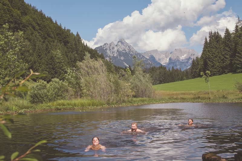 Baden im Bergsee, stille Wanderung, kreative Naturerlebnisse