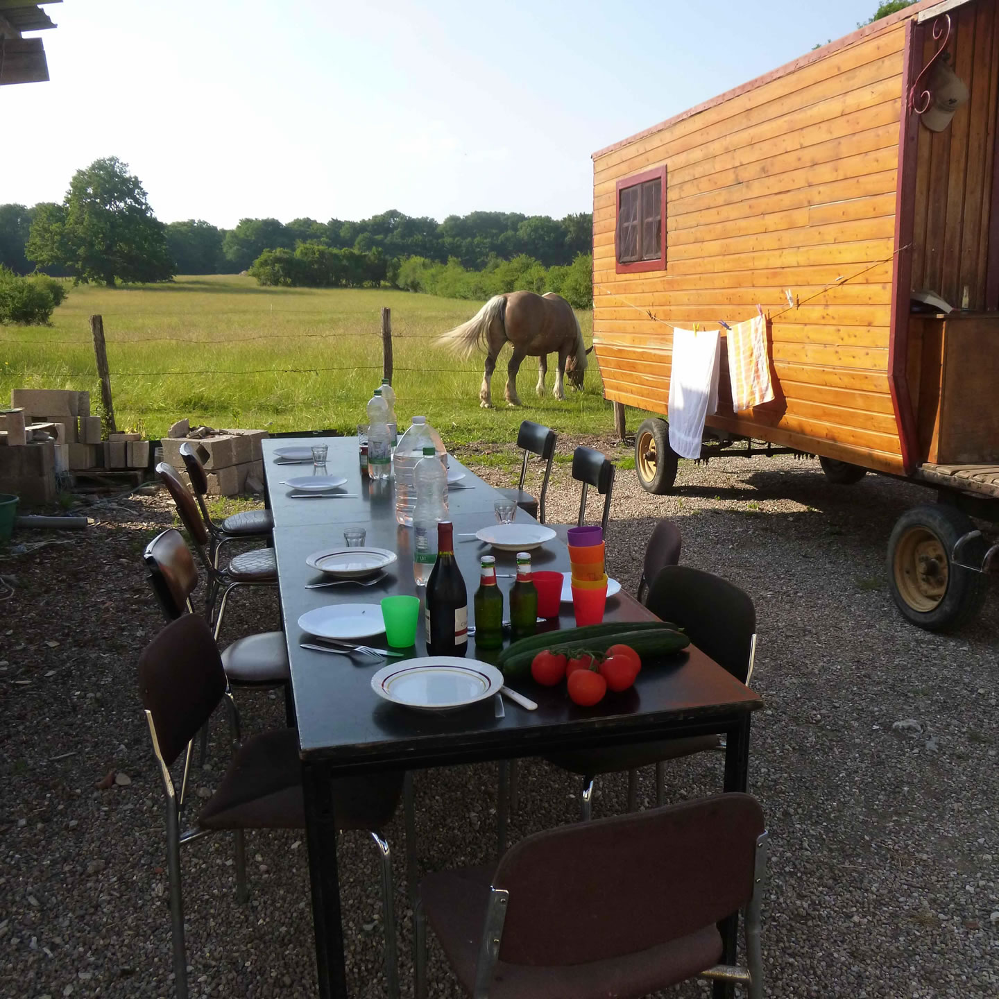 Die erste Nacht verbringen Sie auf dem Pferdehof in Ihrem Pferdewagen (Holzwagen oder roter Wagen). -