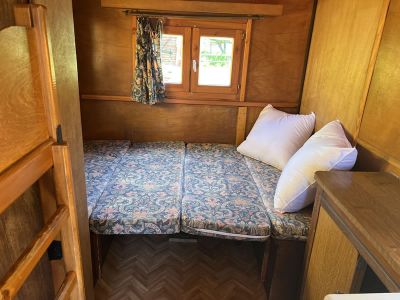Unterkunft- Holzwagen: 4 Schlafplätze: 1 Doppelbett à 1,85 m x 1,20 m und 1 Stockbett mit zwei Schlafplätzen à 1,80 m x 0,55 m. Bitte bringen Sie Schlafsack und Handtücher mit. Kopfkissen und Kopfkissenbezug sowie Spannbettlaken sind vorhanden.