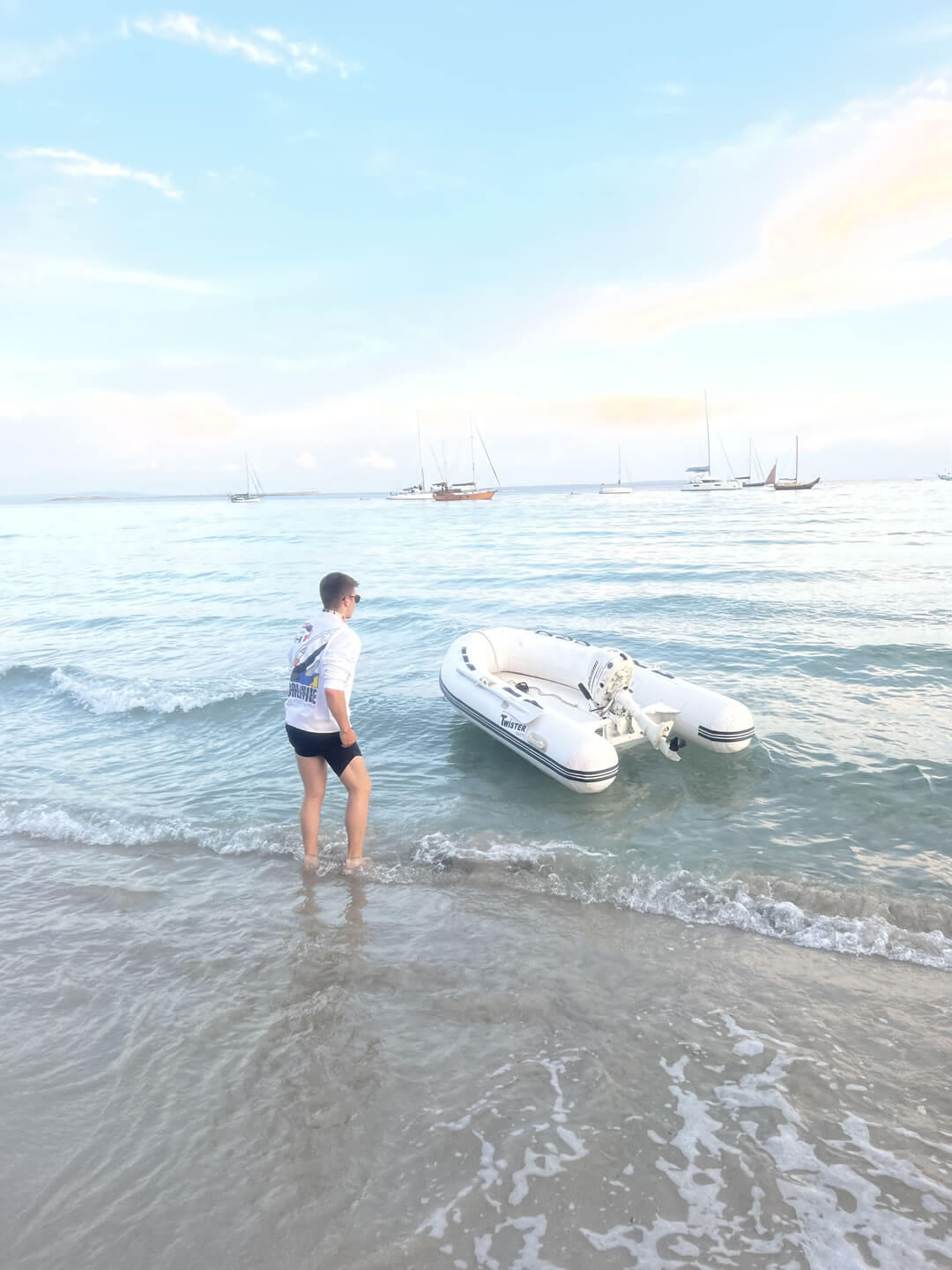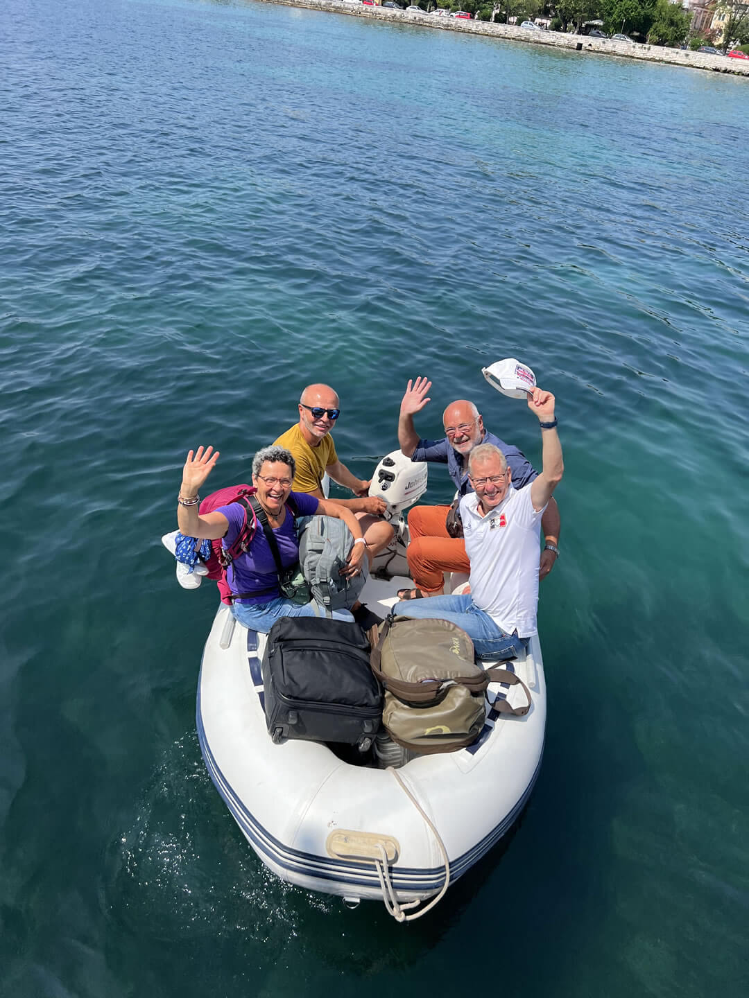 Das Beiboot/Dinghi verfügt über einen Motor mit 4 PS. Mit ihm fährt man an Land, falls das Schiff vor Anker liegt. Von Bord ins Beiboot oder im Hafen auch direkt an Land kommt man über eine Treppe oder Leiter. Hier ist eine gewisse Beweglichkeit nötig.
