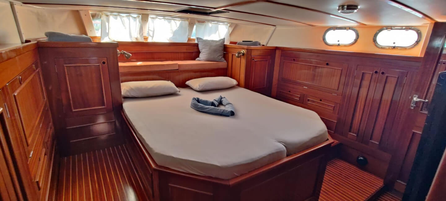 - Eignerkabine mit großem Doppelbett und Duschbad
