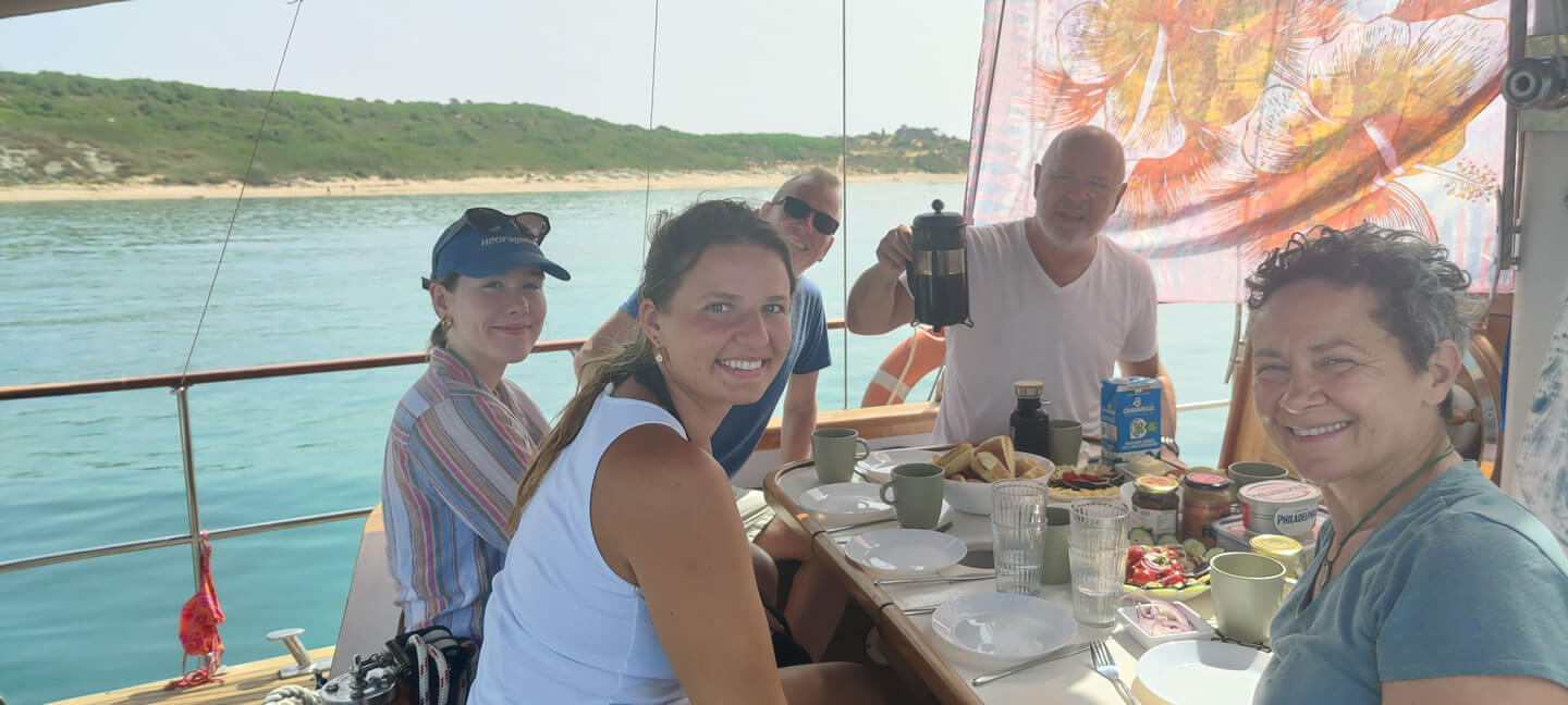 Die Kosten für Lebensmittel, Getränke und Essen gehen teilt sich die Crew über die Bordkasse. Die Kosten für die Verpflegung des Skippers werden unter den Gästen aufgeteilt.