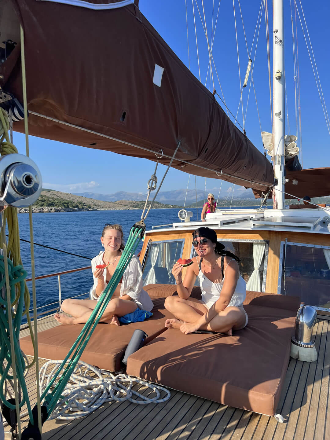Gerne! Unter Anleitung werden die Segel gesetzt, eine Wende oder eine Halse gefahren. Beim An- und Ablegen des Schiffes im Hafen oder in einer Bucht mit Anker ist tatkräftige Unterstützung durch die Mitreisenden erforderlich. Die Manöver werden ausführlich erklärt und Rollen an die Gäste vergeben.