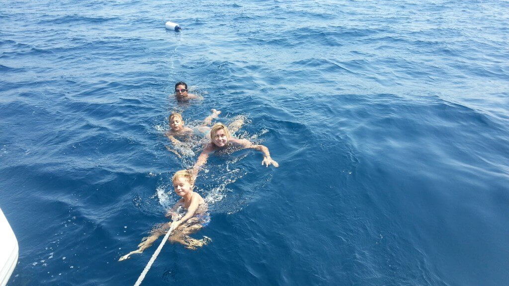 - kindergerechte Yachtausrüstung (Schwimmwesten, Relingsnetz)